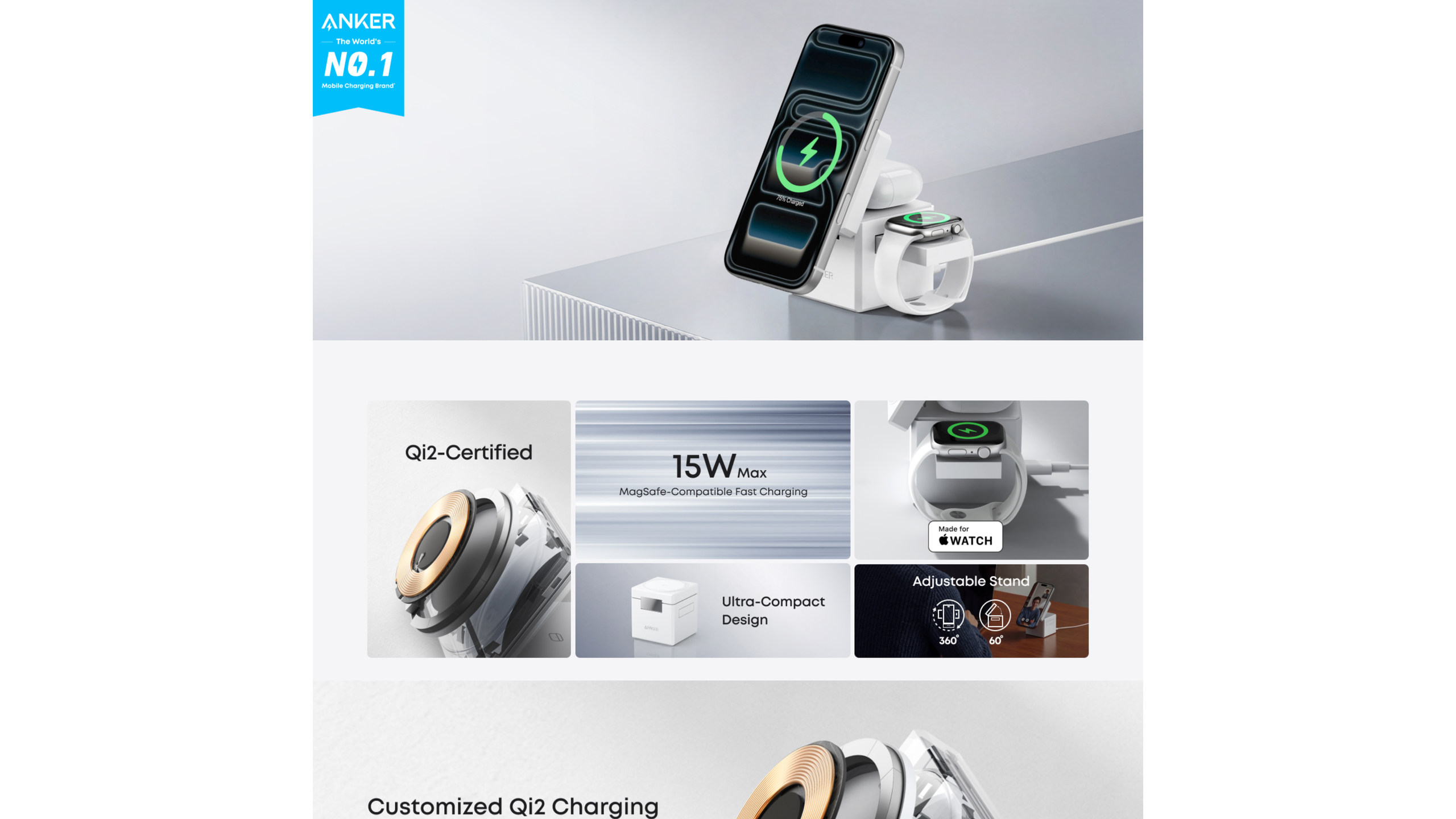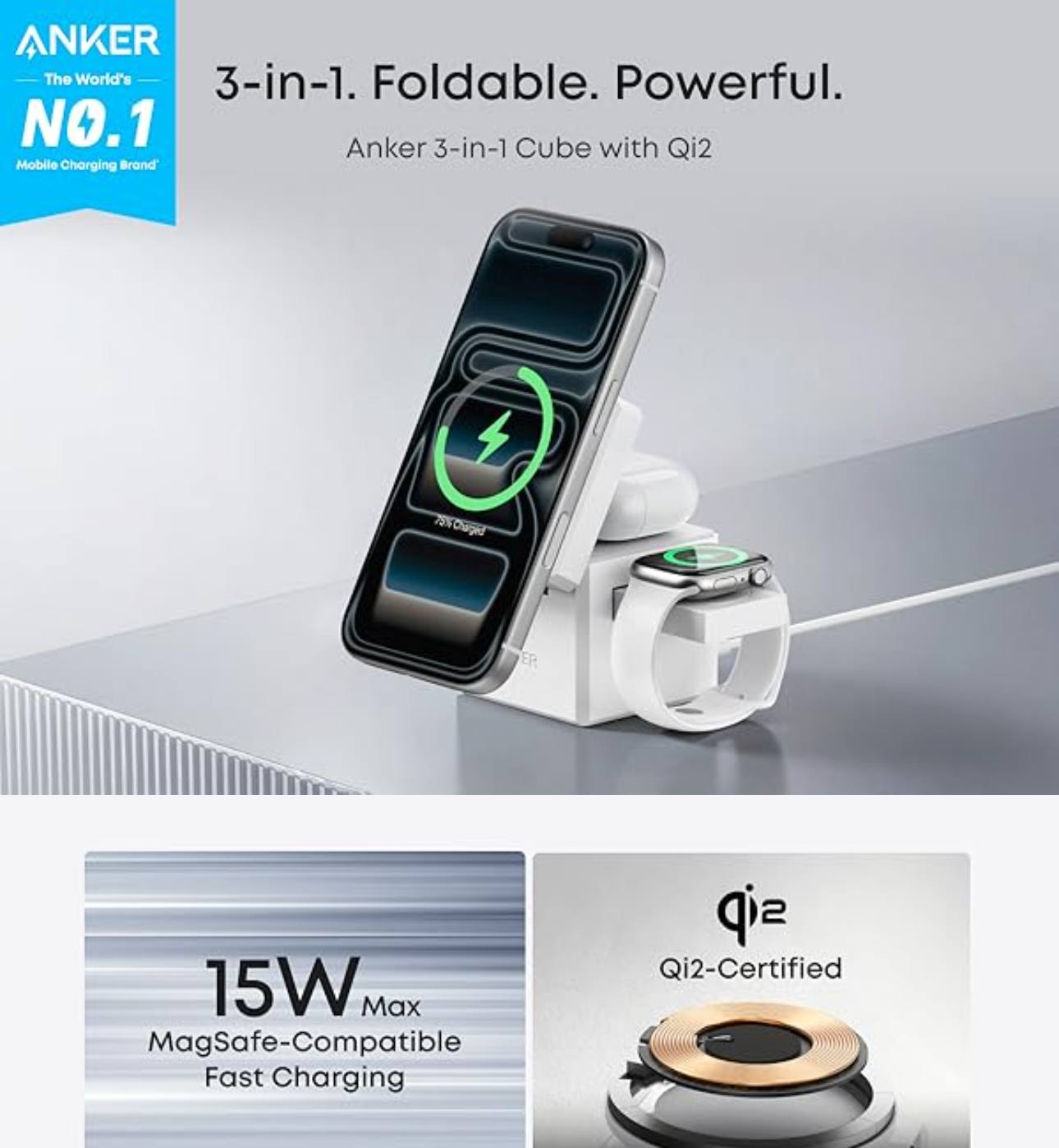 Anker 3-in-1 Cube with Qi2 offers safe, fast, and simultaneous charging for your iPhone, AirPods, and Apple Watch. Eliminate cable clutter with this clean, all-in-one solution for your Apple ecosystem.