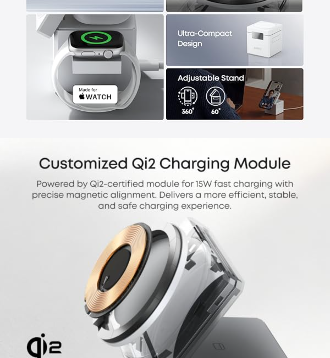 Adjust the viewing angle up to 60° in either portrait or landscape mode. Ideal for FaceTime, scrolling through TikTok, or streaming videos while your phone charges.