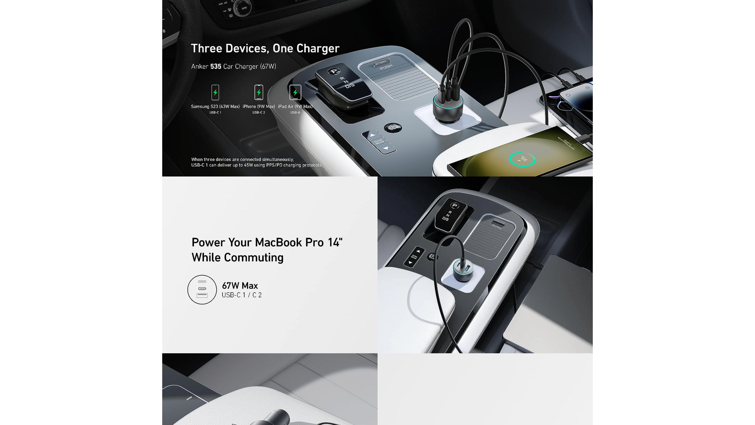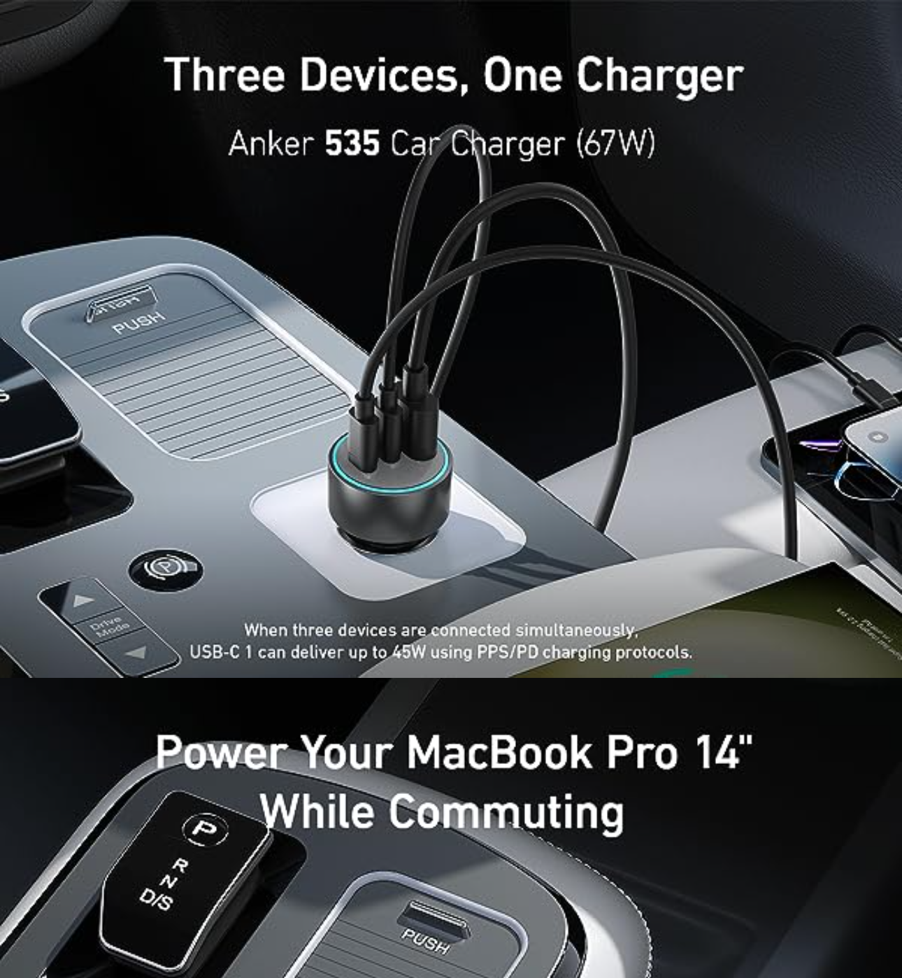 A 67W PowerIQ 3.0 USB-C port provides full-speed charging to USB-C laptops including the MacBook Pro 14.