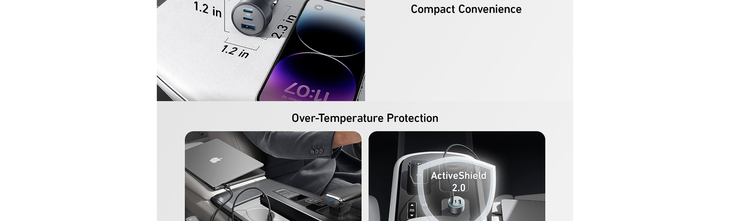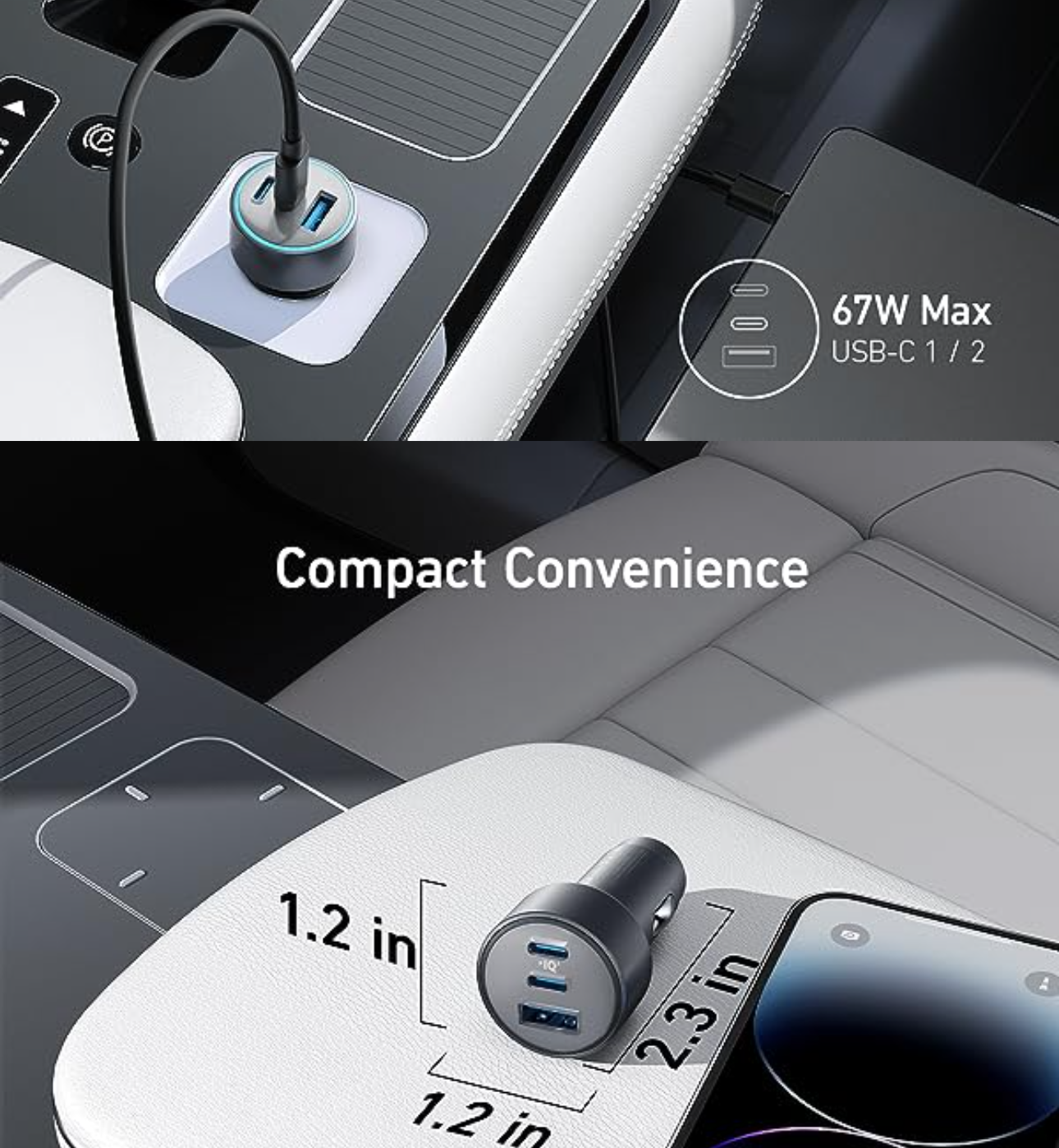 The small and compact car charger, measuring just 2.3 × 1.2 × 1.2 inches, makes it the perfect travel companion for non-stop power on the road.