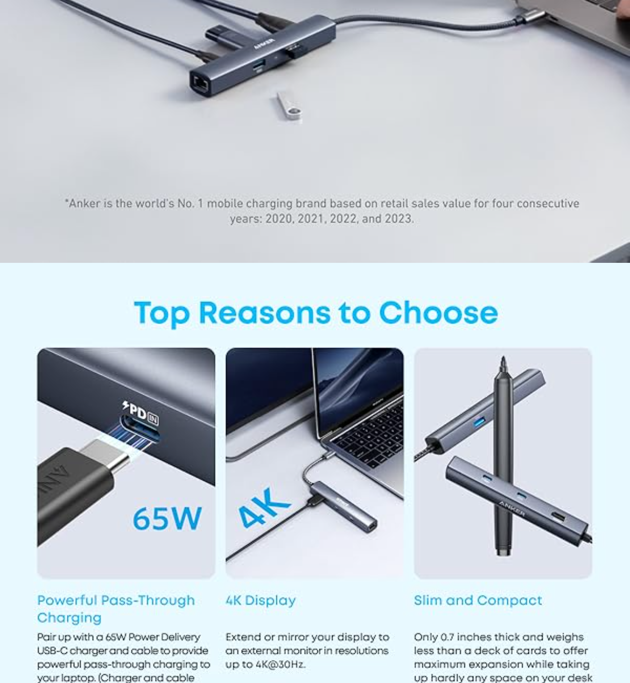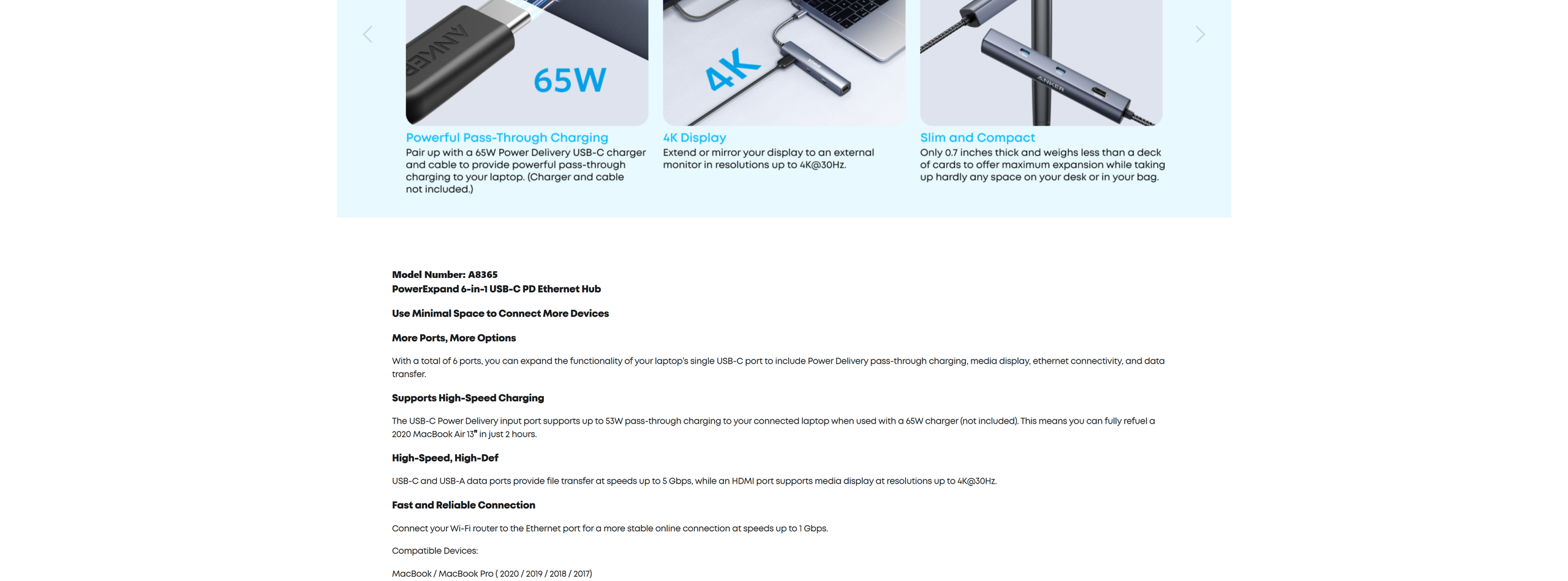 Connect a 65W wall charger to the Power Delivery input port to provide high-speed pass-through charging to your laptop.