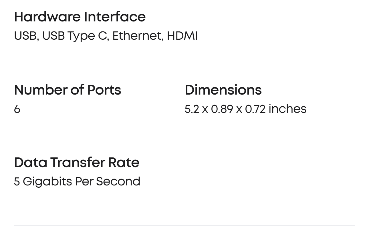 Equipped with a Power Delivery input port, an HDMI port, an Ethernet port, a USB-C data port, and 2 USB data ports.
