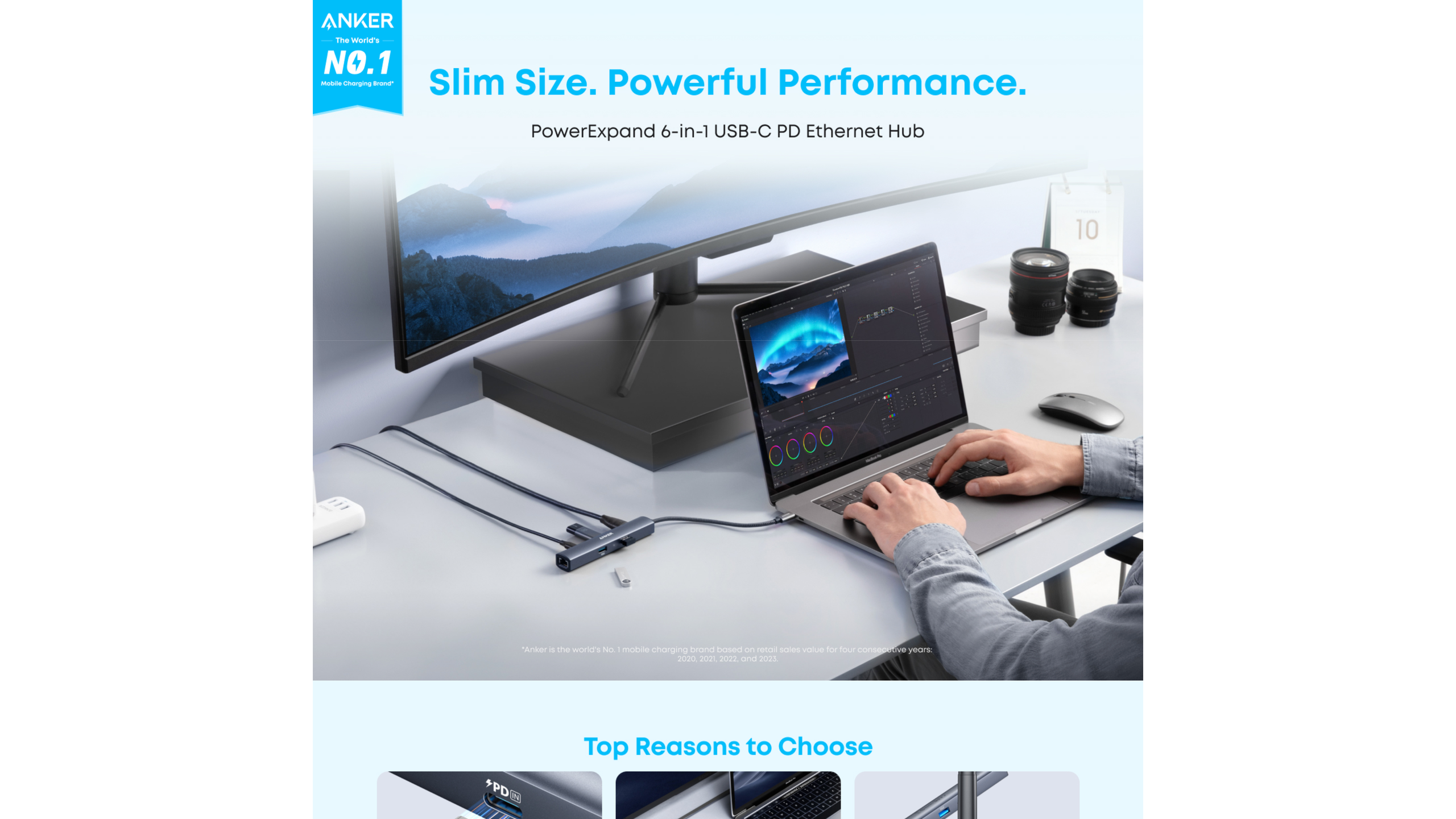 Anker 543 USB-C Hub (6-in-1, Slim) / PowerExpand 6-in-1 USB-C PD Ethernet Hub, travel pouch, welcome guide, our worry-free 18-month warranty, and great customer service.