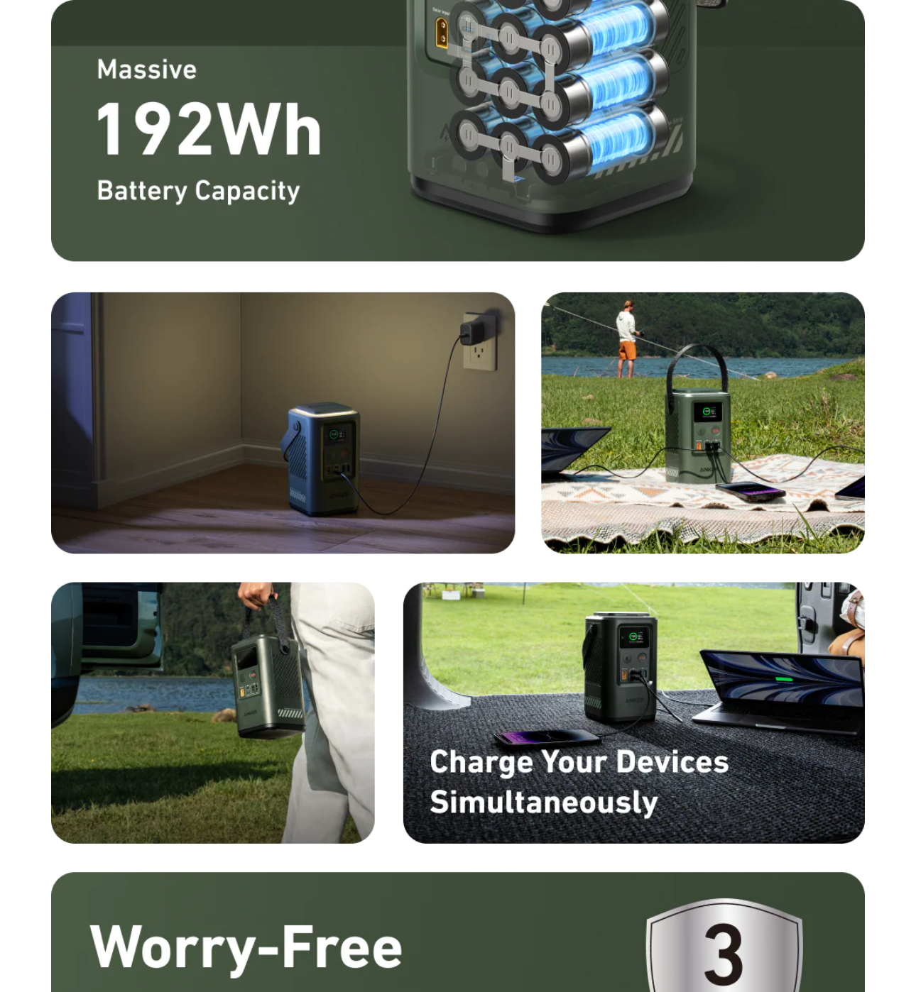Features 60W and 27W USB-C ports, allowing you to charge your phone and laptop simultaneously—ideal for quick power on the go.