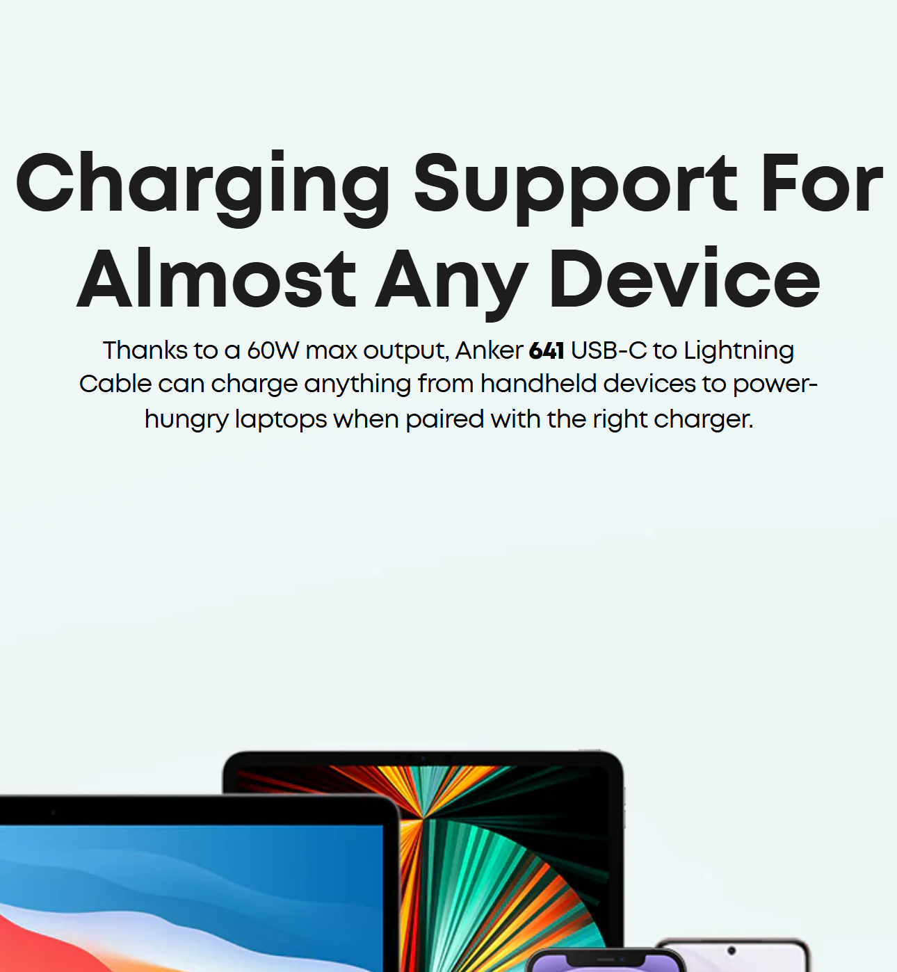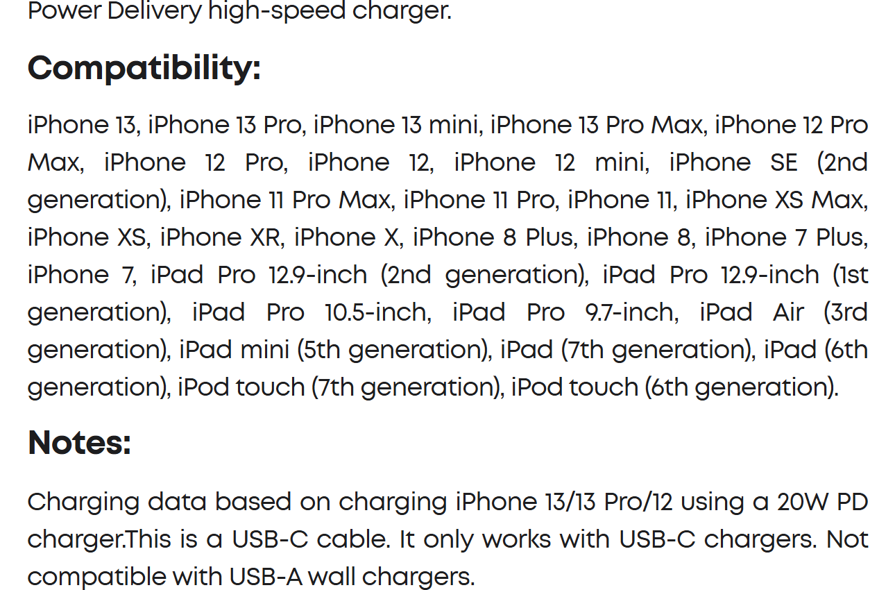 Supports a max power output of 100W when paired with a 100W or above wall charger to power up virtually any USB-C device, including phones, tablets, and laptops. (This cable does not support media display.)