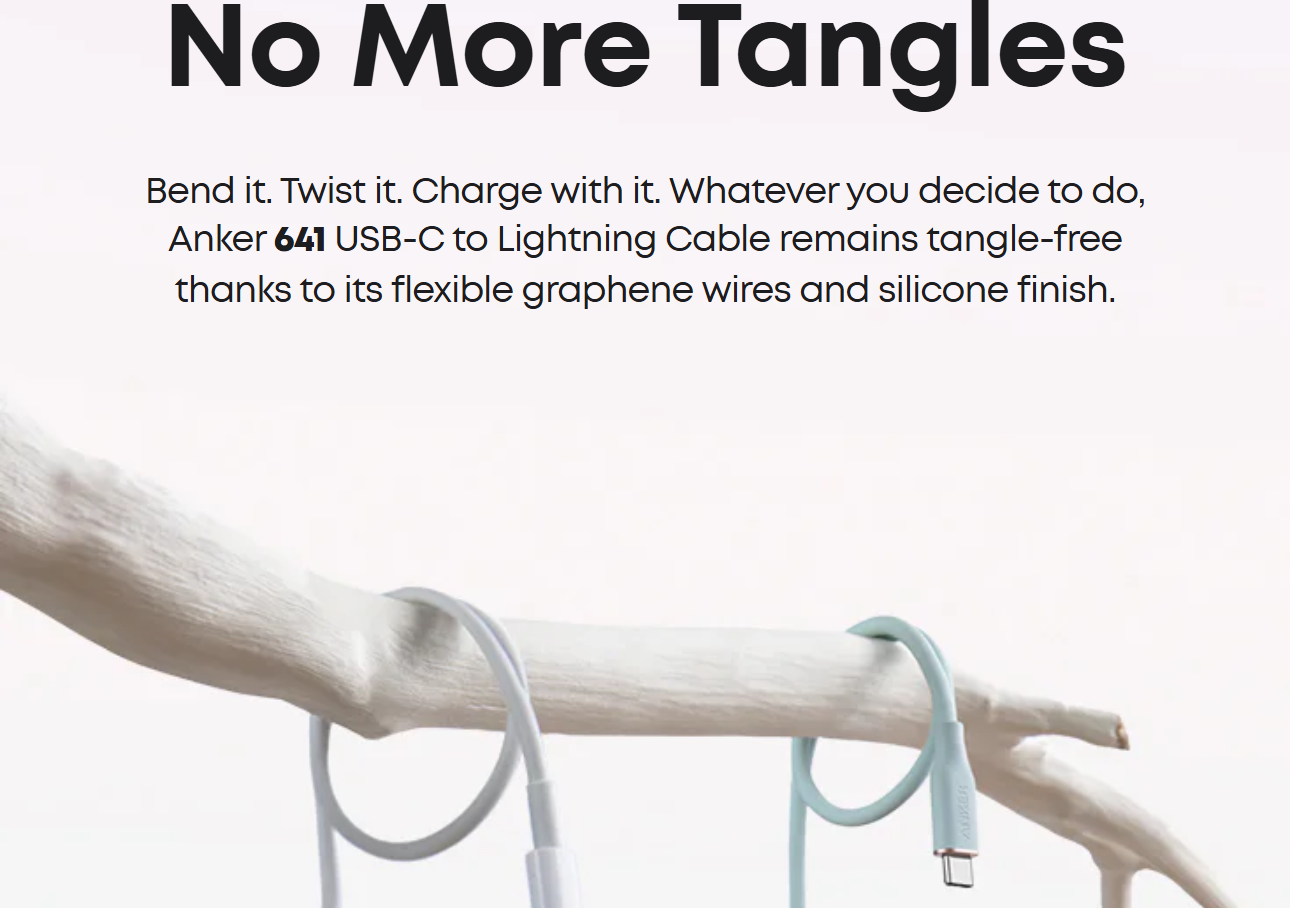 Remains tangle-free even when stuffed into a bag or pocket, or wrapped around a portable charger.