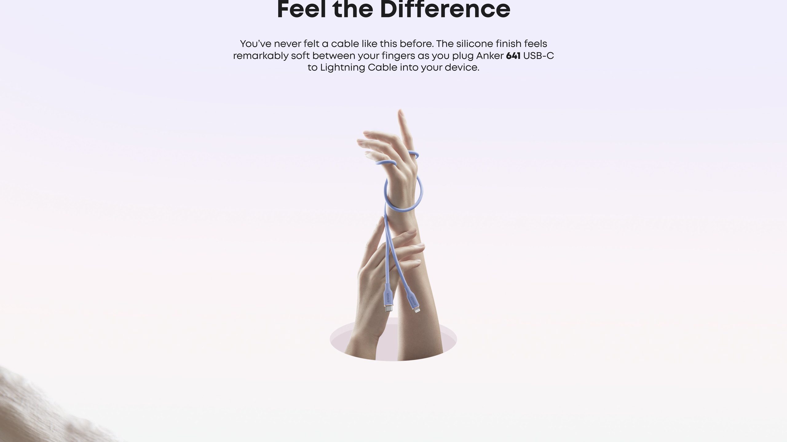 You've never felt a cable like this before. The silicone finish feels remarkably soft between your fingers as you plug the cable into your device.