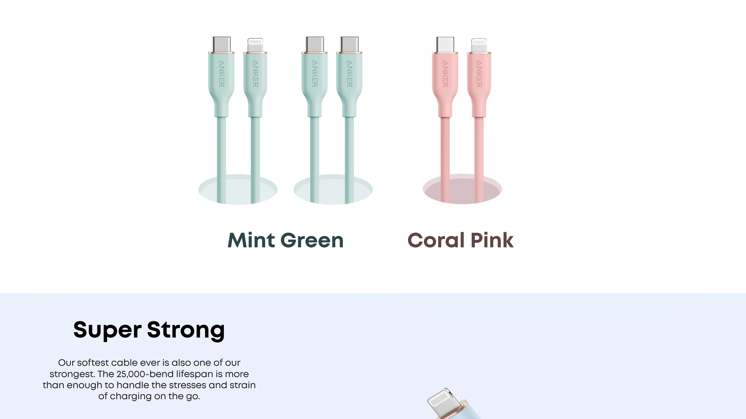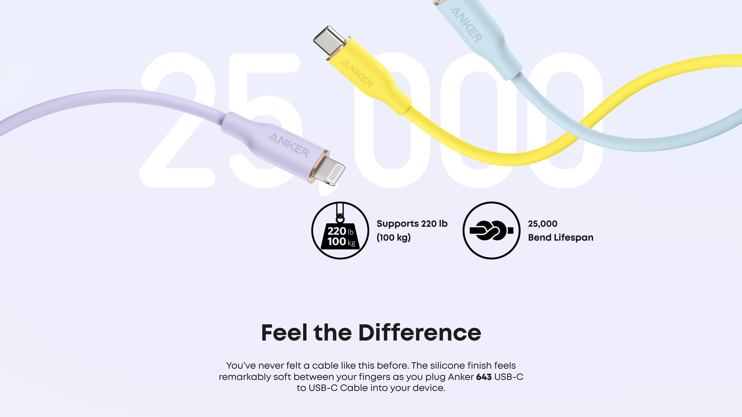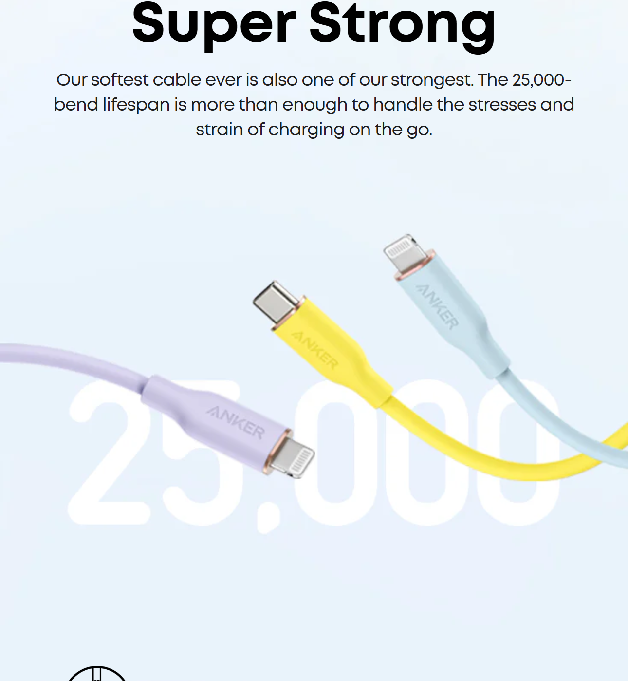 Our softest cable ever is also one of our strongest. Thanks to a 25,000-bend lifespan, this cable is more than ready to handle the stresses and strains of charging on the go.