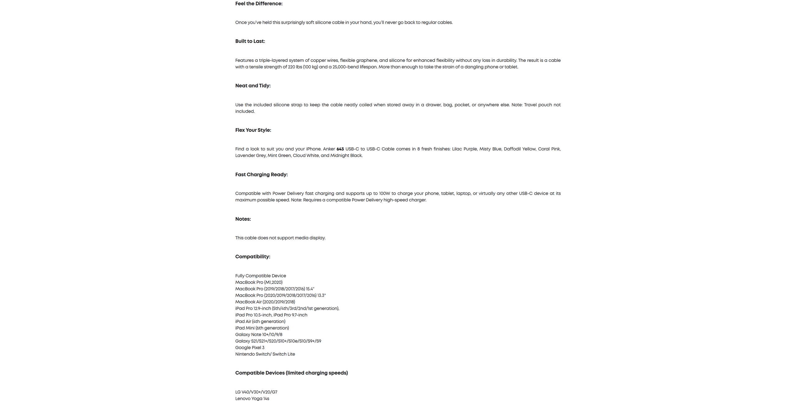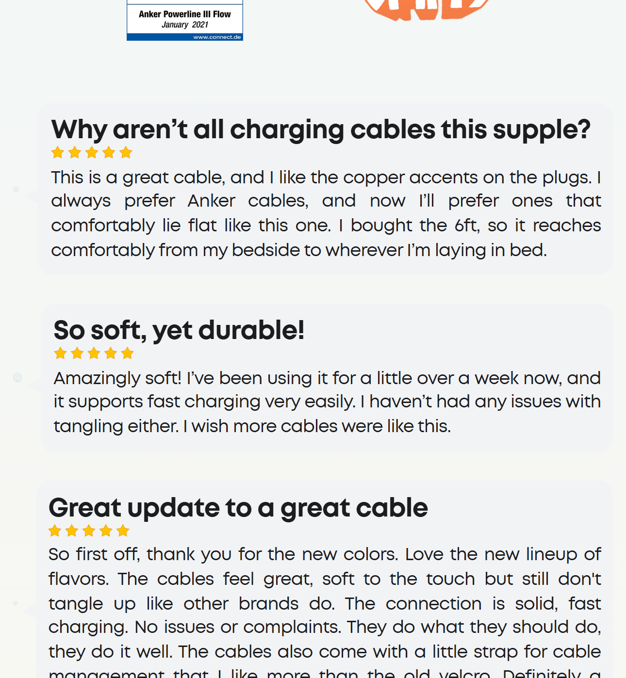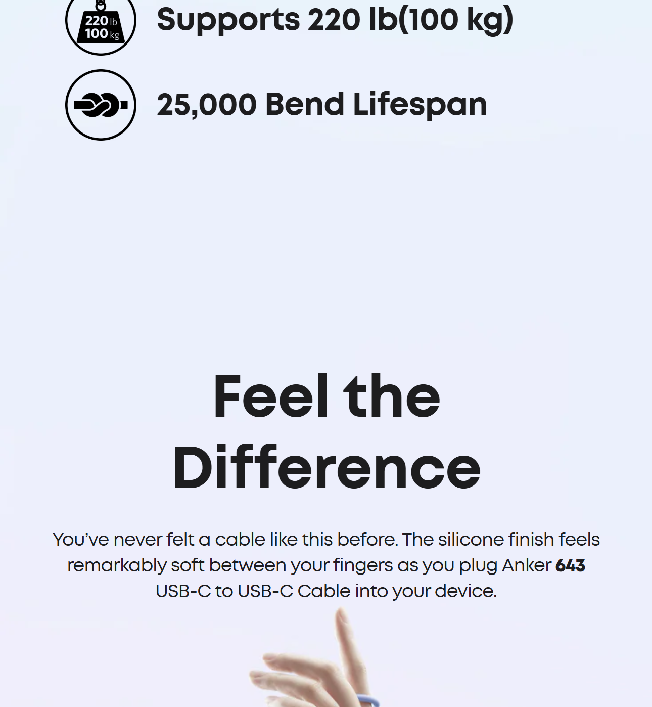 Our softest cable ever is also one of our strongest. Thanks to a 25,000-bend lifespan, this cable is more than ready to handle the stresses and strains of charging on the go.