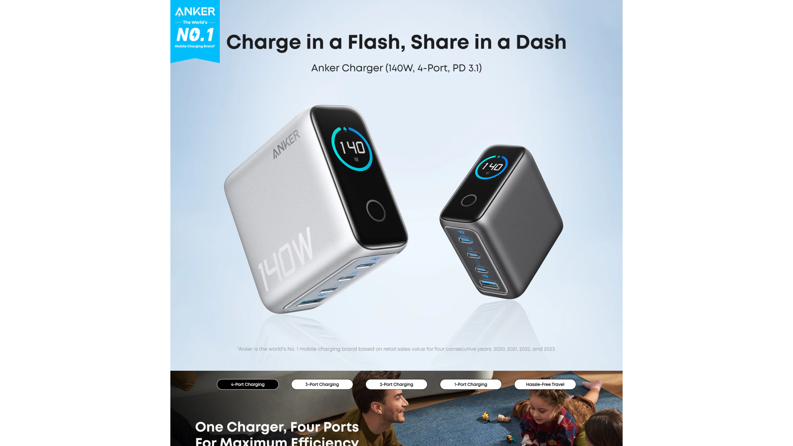 Enjoy the convenience of powering four devices simultaneously with our advanced GaN technology for optimal performance.