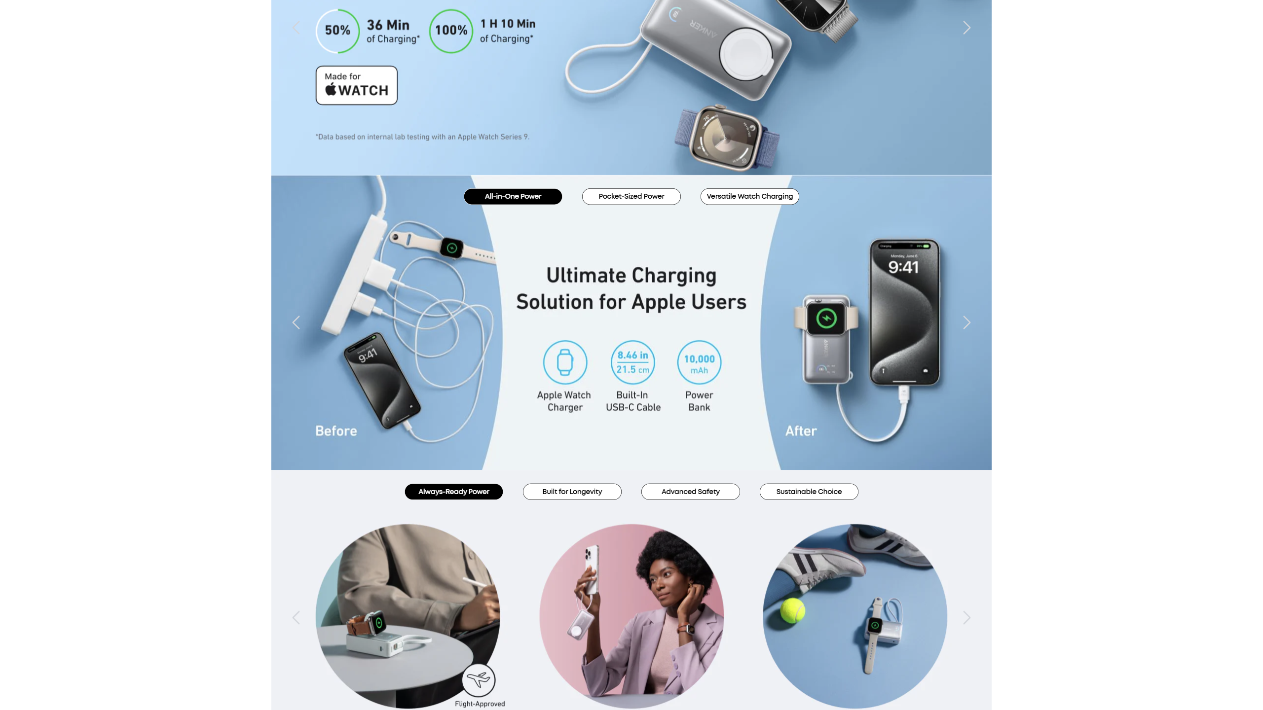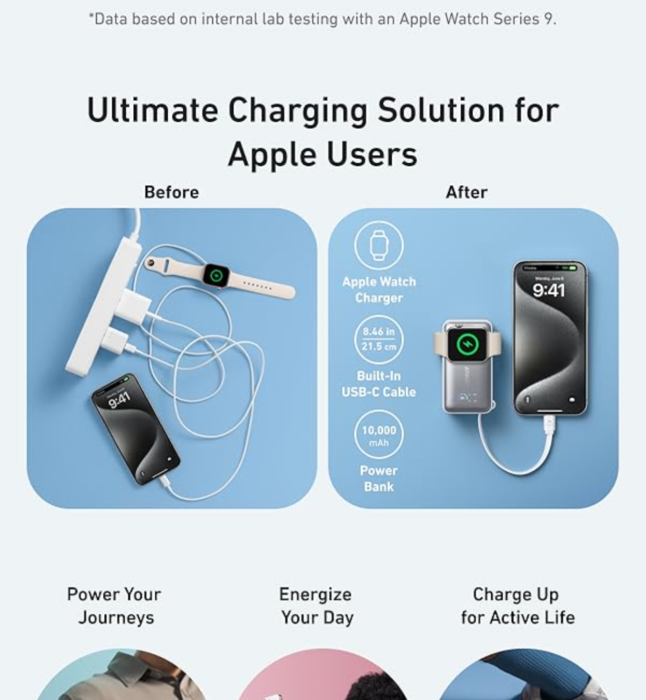 Maximize your charging efficiency with the Apple-certified power bank, capable of charging an Apple Watch Series 9 to 47% in just 30 minutes.