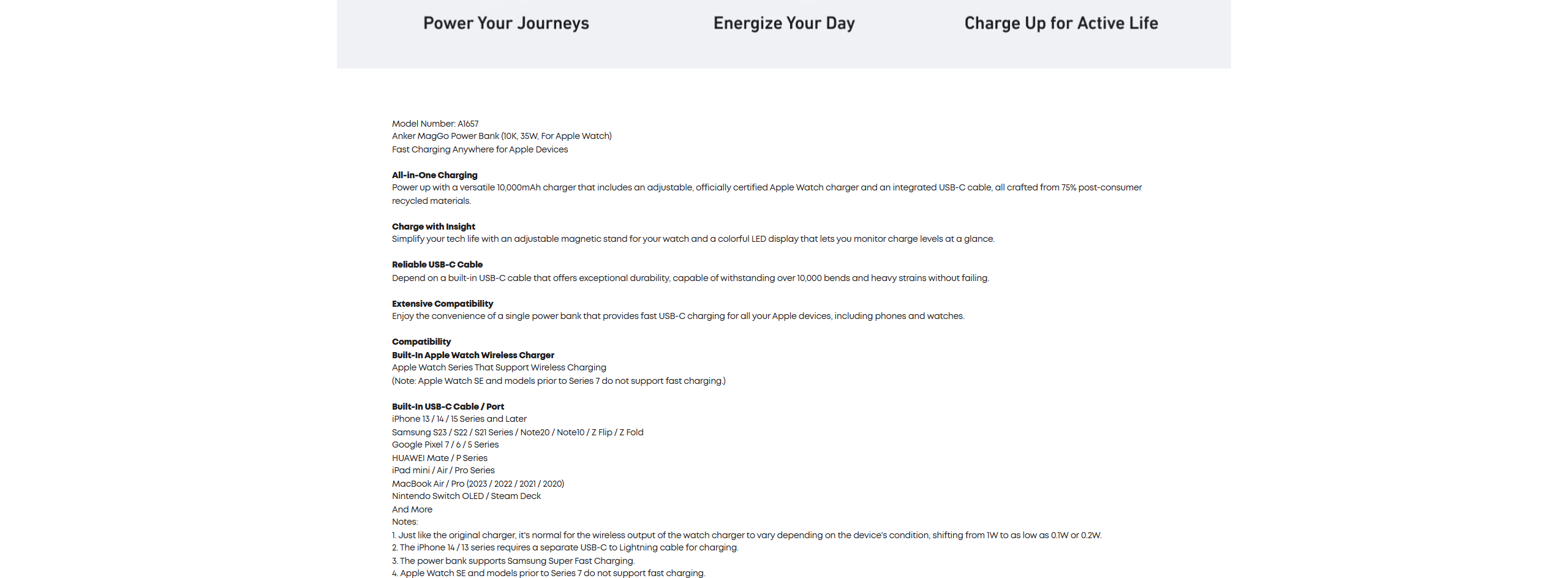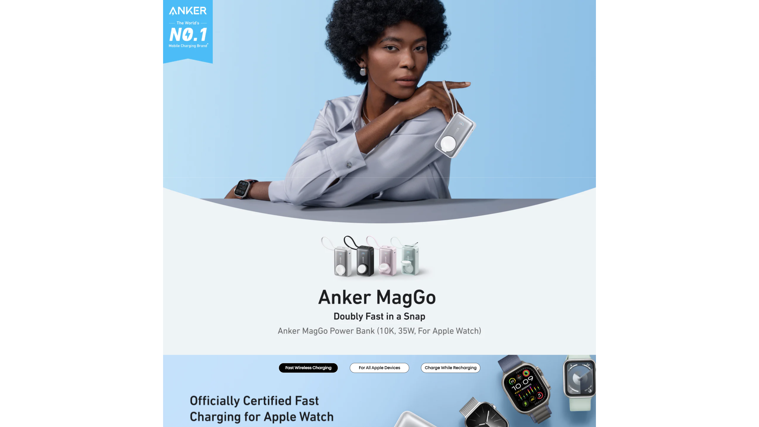 Anker MagGo Power Bank (10K, 35W, For Apple Watch)