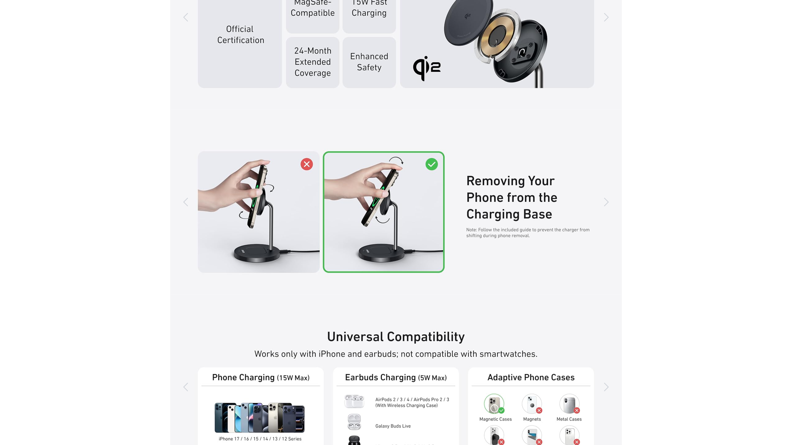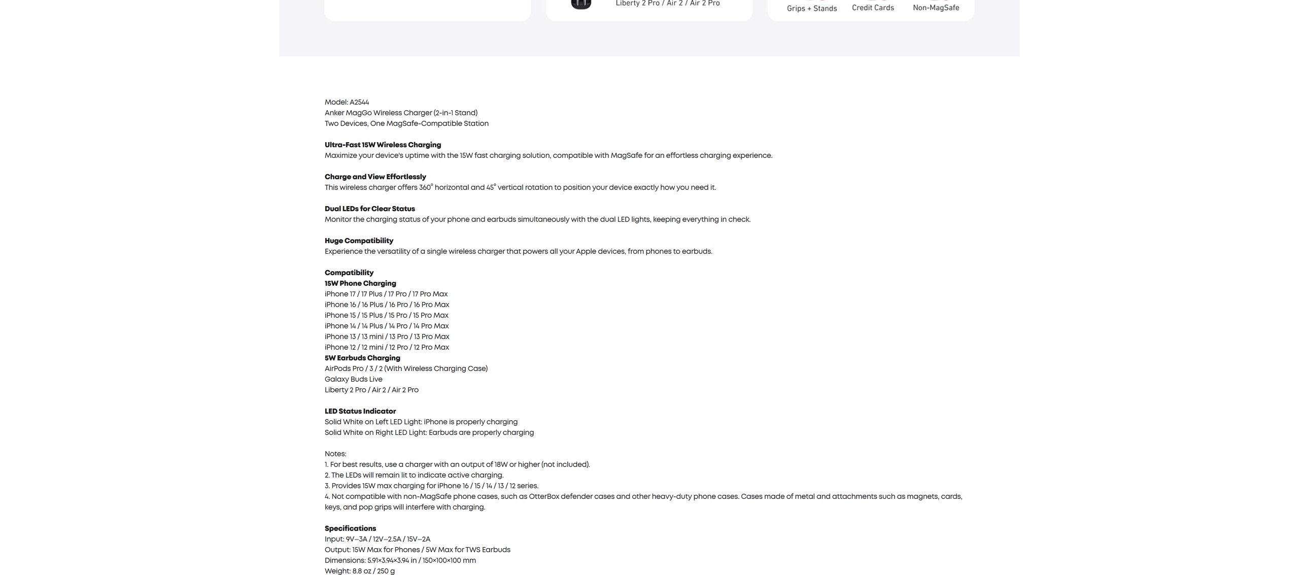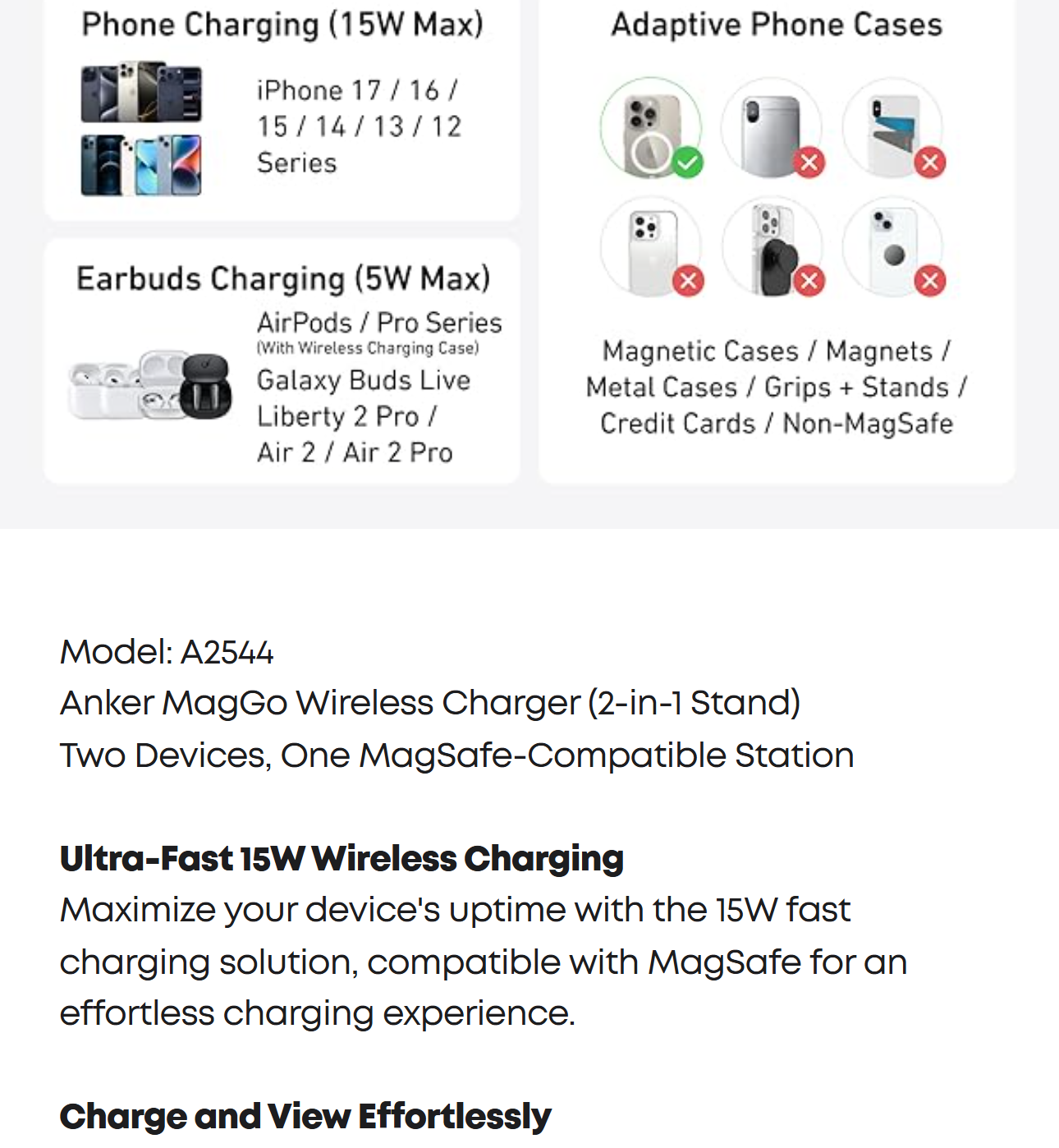 Anker MagGo Wireless Charger (2-in-1 Stand), 5 ft / 1.5 m USB-C to USB-C cable, welcome guide, 24-month warranty, and our friendly customer service.