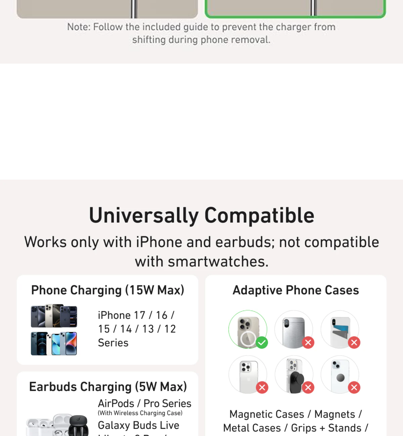 Enjoy the convenience and time-saving benefits of charging both your phone and earbuds at once.