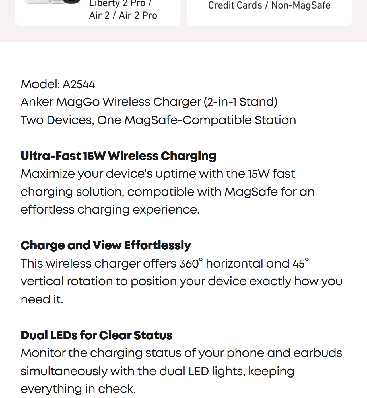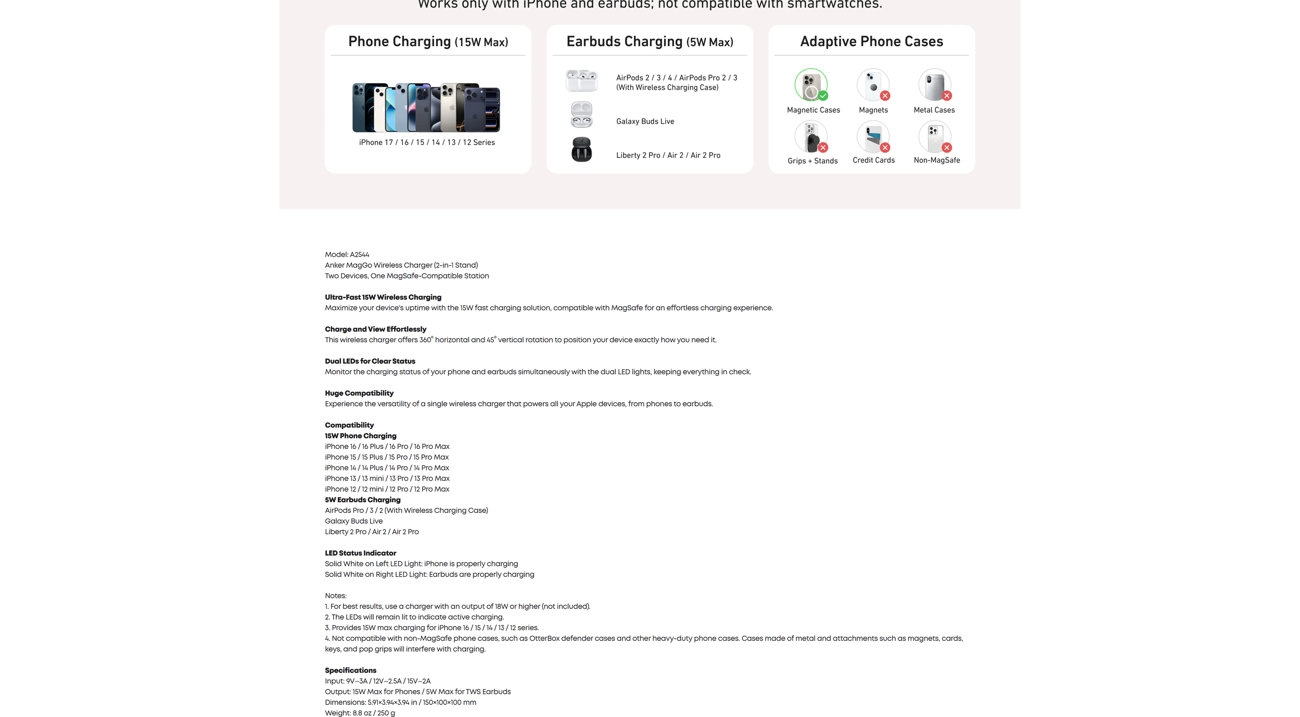 Anker MagGo Wireless Charger (2-in-1 Stand), 5 ft / 1.5 m USB-C to USB-C cable, welcome guide, 24-month warranty, and our friendly customer service.