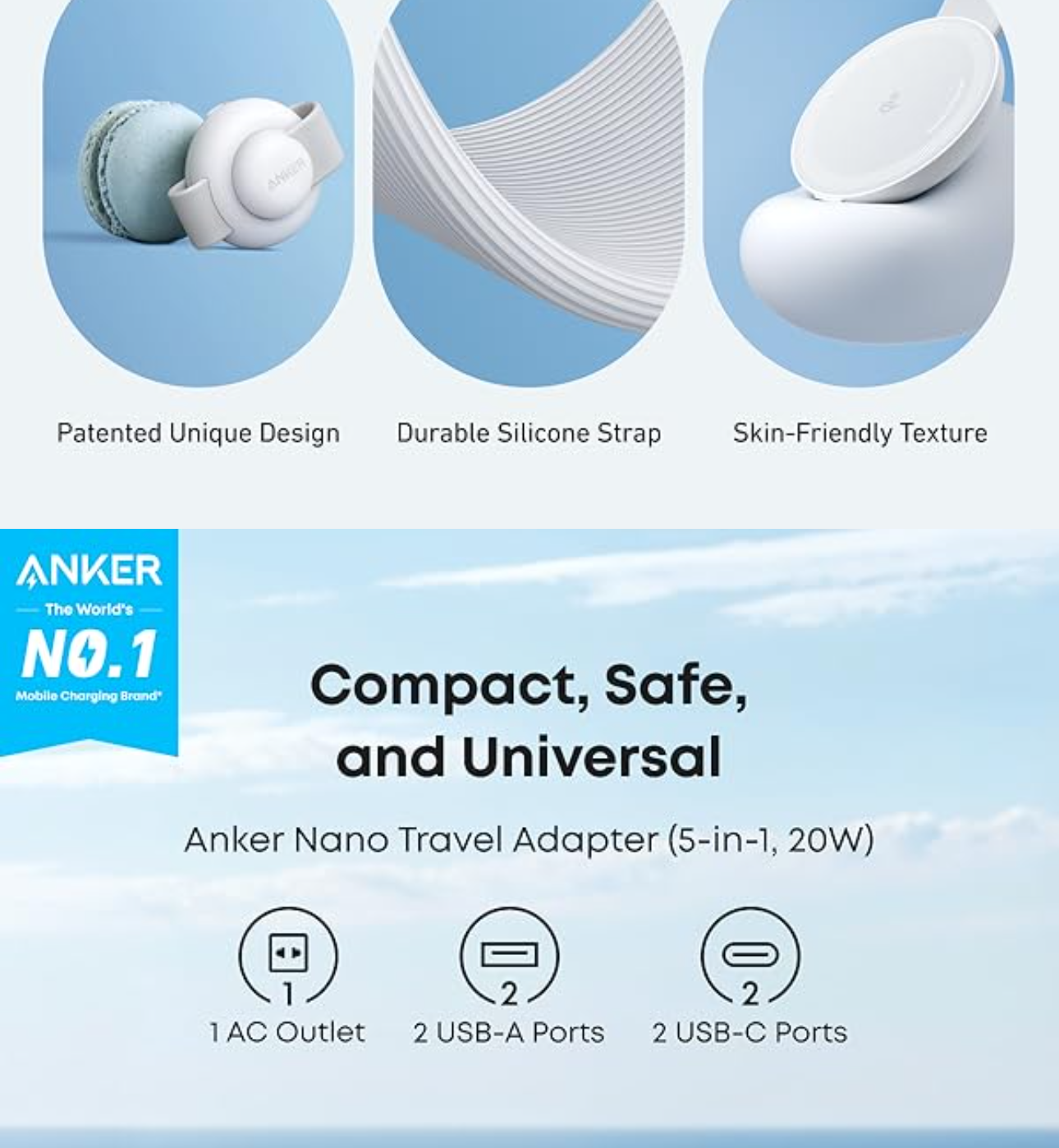 Anker MagGo Wireless Charging Station (3-in-1, Foldable Pad) and Anker Nano Travel Adapter (5-in-1, 20W, 1-Pack)