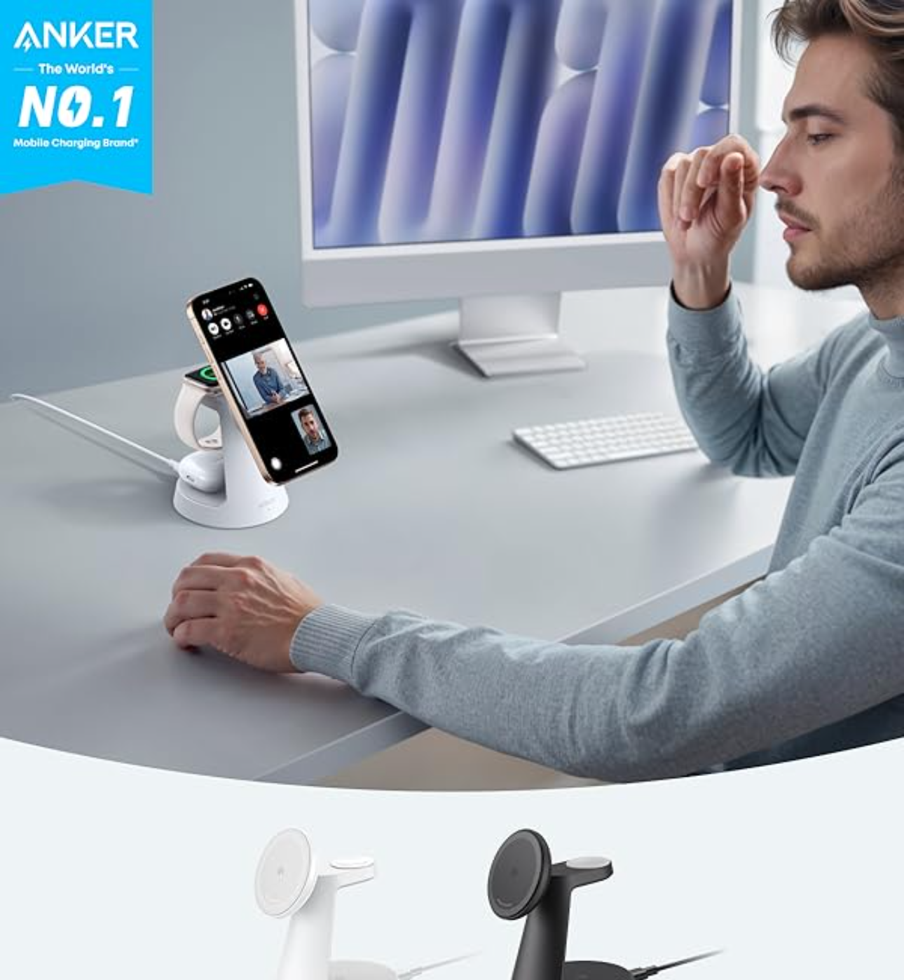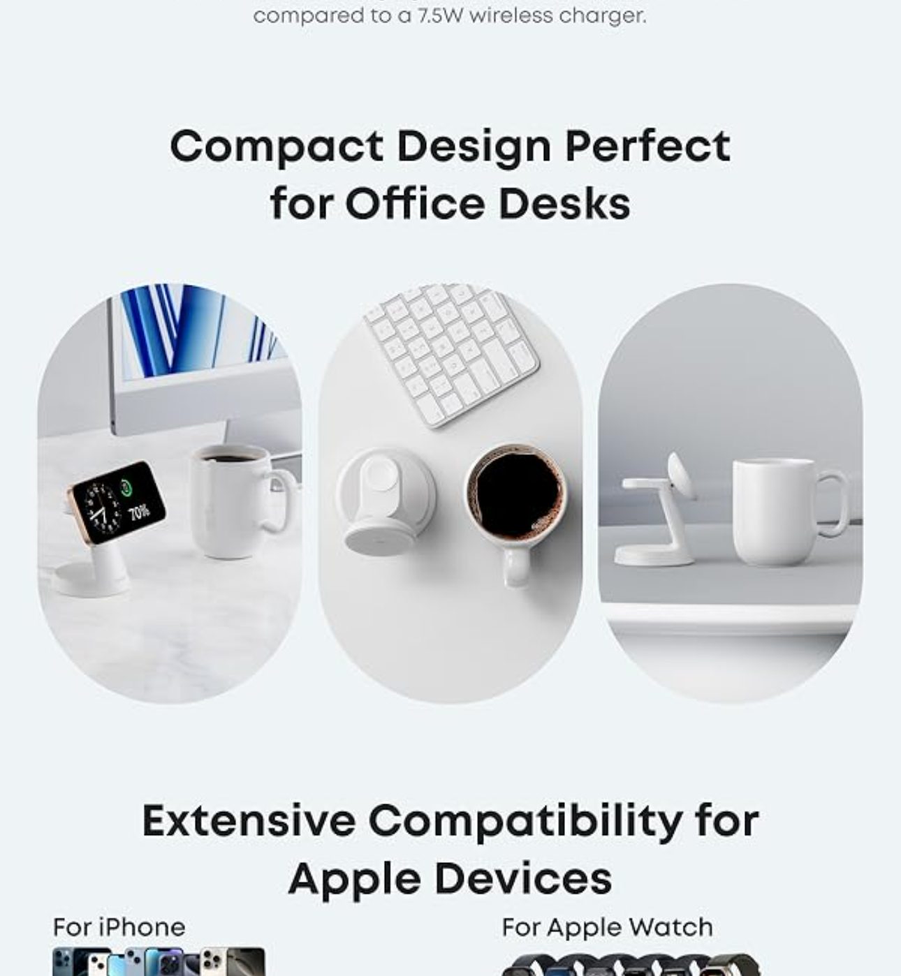 Ideal for clutter-free workspaces, this compact charger fits ideally on any desk, powering everything from phones to watches.