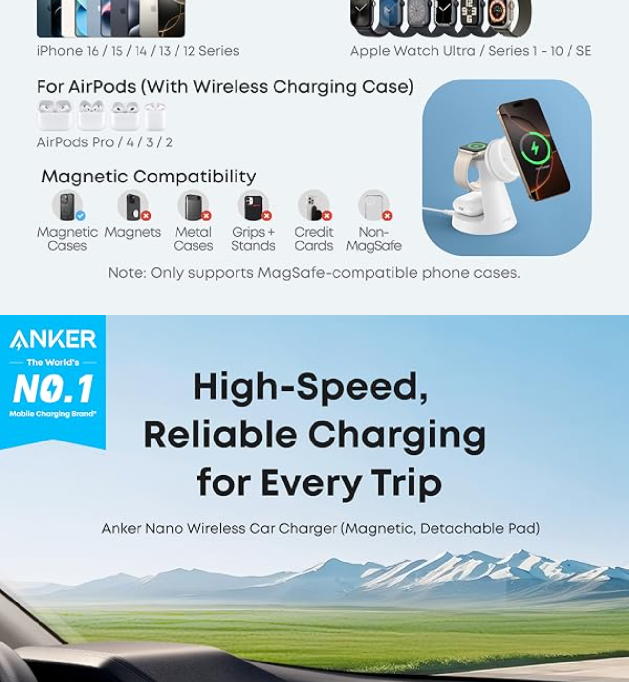 Anker MagGo Wireless Charging Station and Anker Nano Wireless Car Charger