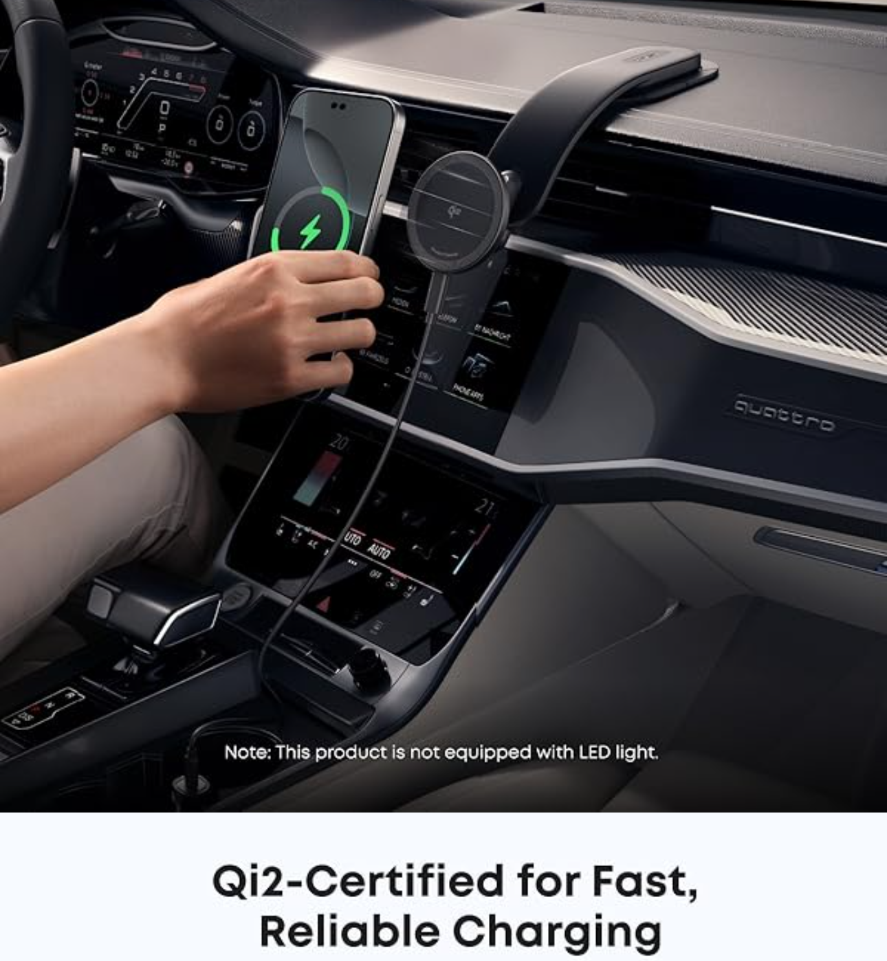Snap your phone to the car charger and enjoy rapid 15W wireless charging. Quickly boost your iPhone 16 Pro to 20% in just 16 minutes.