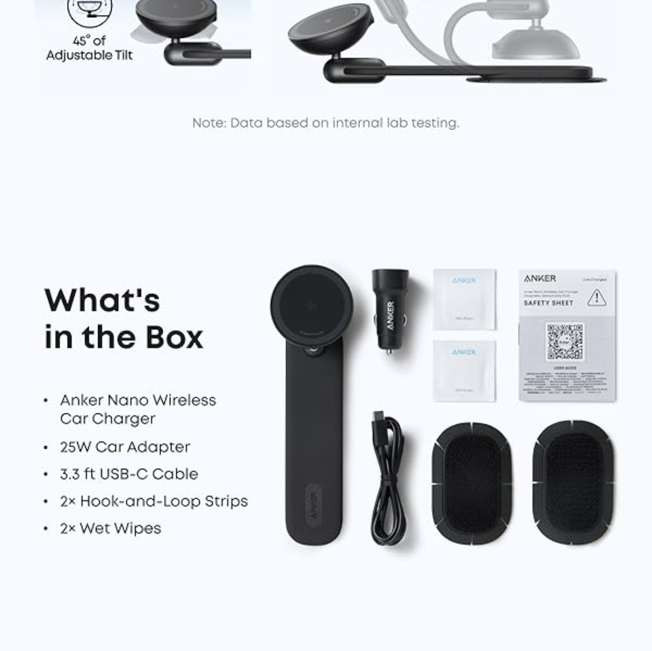 Anker MagGo Wireless Charging Station (3-in-1, Dock Stand), 40W USB-C adapter, 5 ft USB-C to USB-C cable, Anker Nano Wireless Car Charger (Magnetic, Detachable Pad), 25W car adapter, 3.3 ft USB-C to USB-C cable, 2 hook-and-loop strips, 2 wet wipes, welcome guide, 24-month warranty, and our friendly customer service.