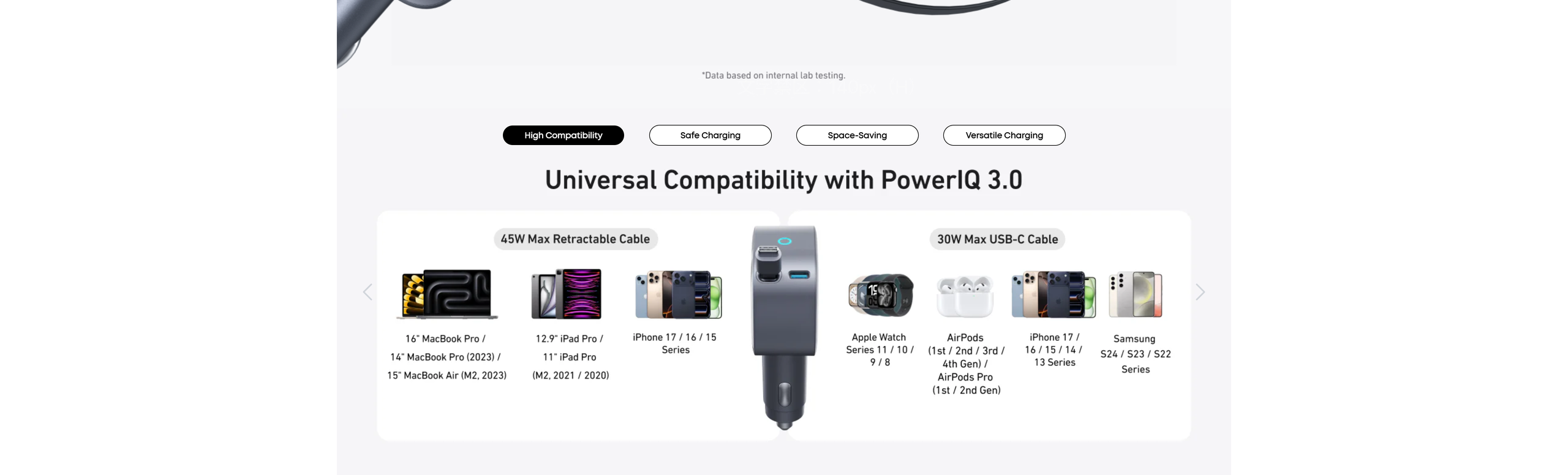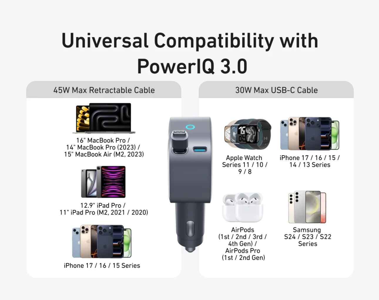 Experience rapid charging with the 45W built-in retractable cable and 30W USB-C port, perfect for powering up laptops and tablets together without slowing down.