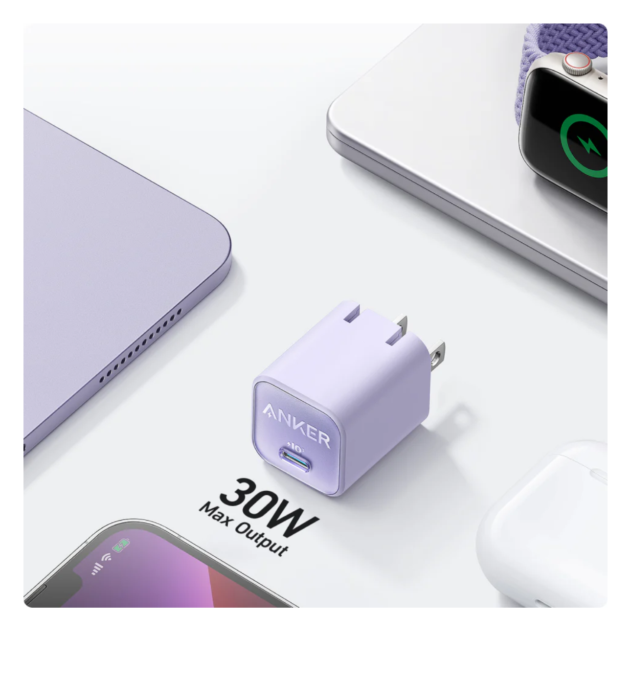 Upgraded with a 30W output so now you can charge your earbuds, phone, tablet, and even your MacBook Air with a tiny charger.
