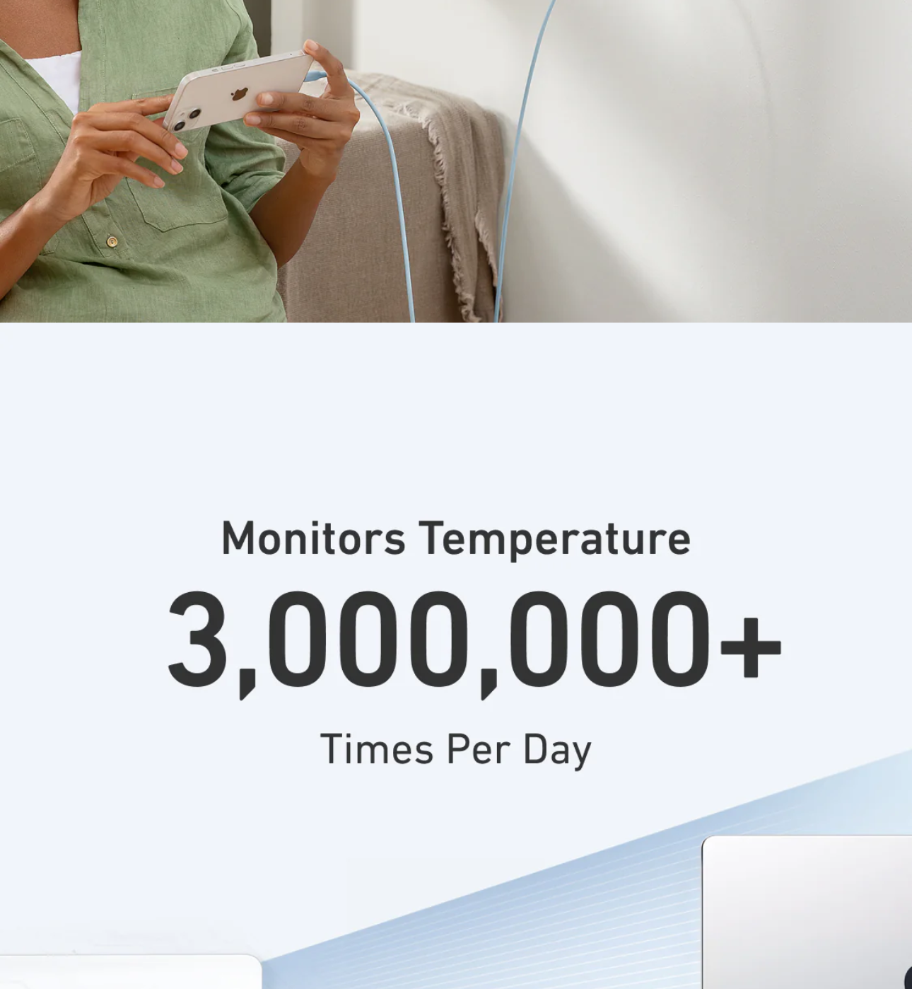 Anker's proprietary technology safeguards your devices by intelligently monitoring temperature over 3 million times per day—that's twice as often as ActiveShield 1.0.
