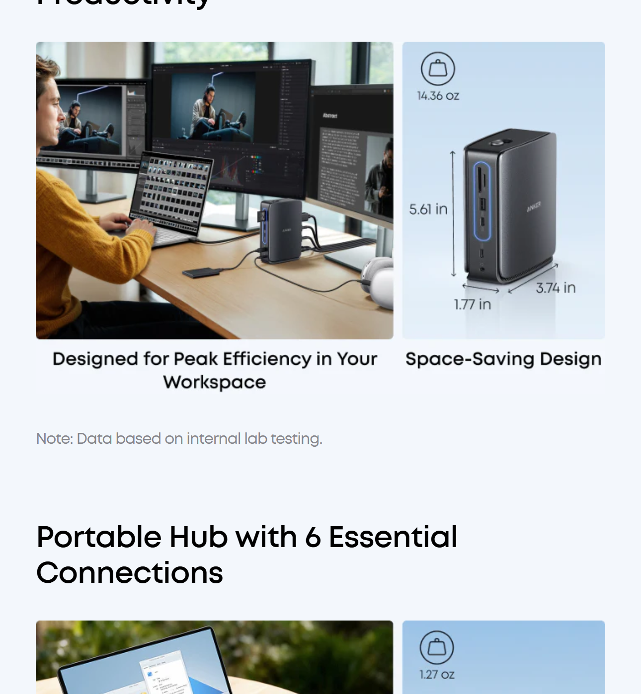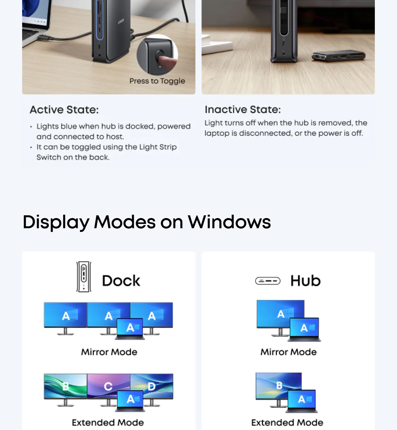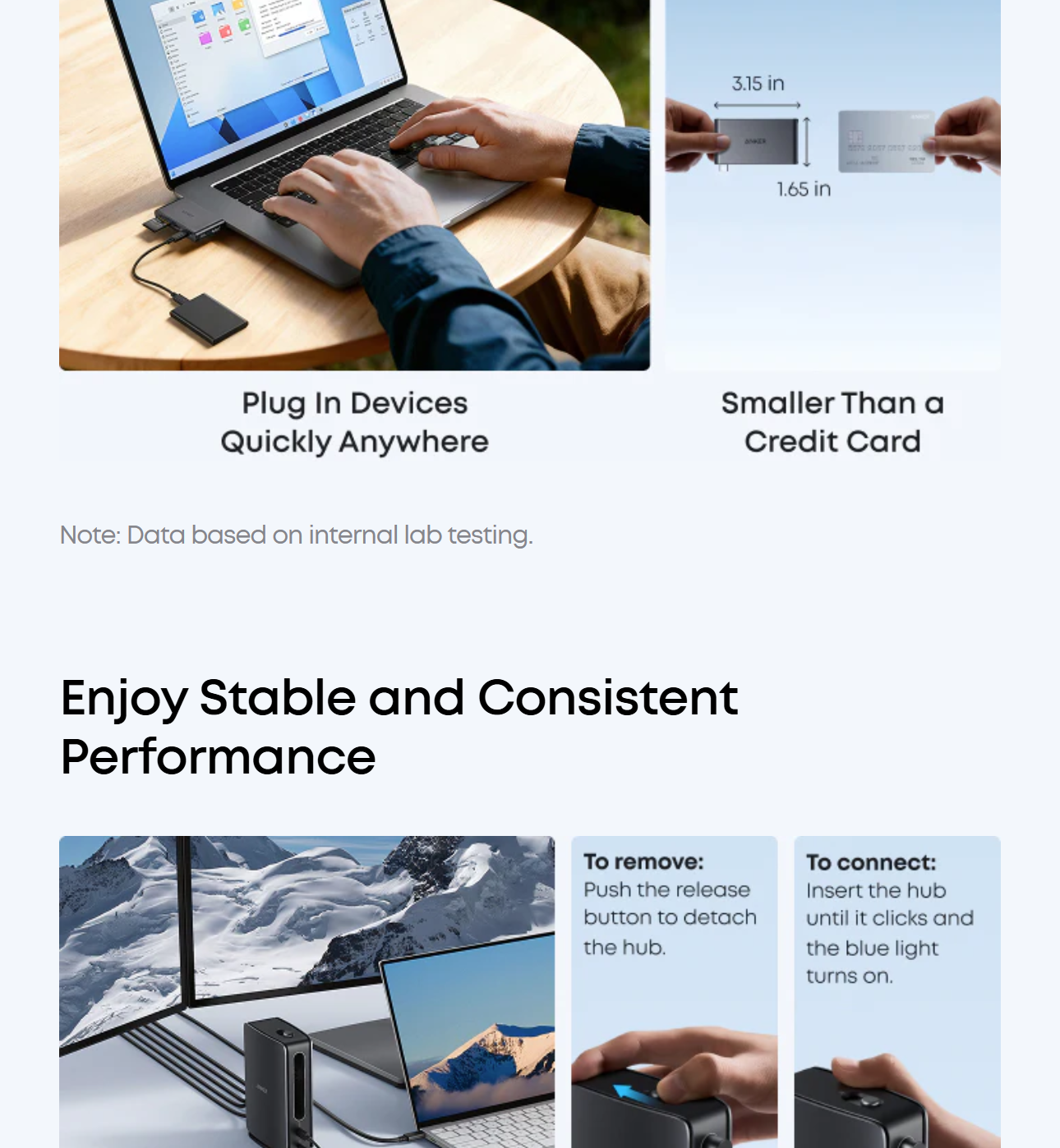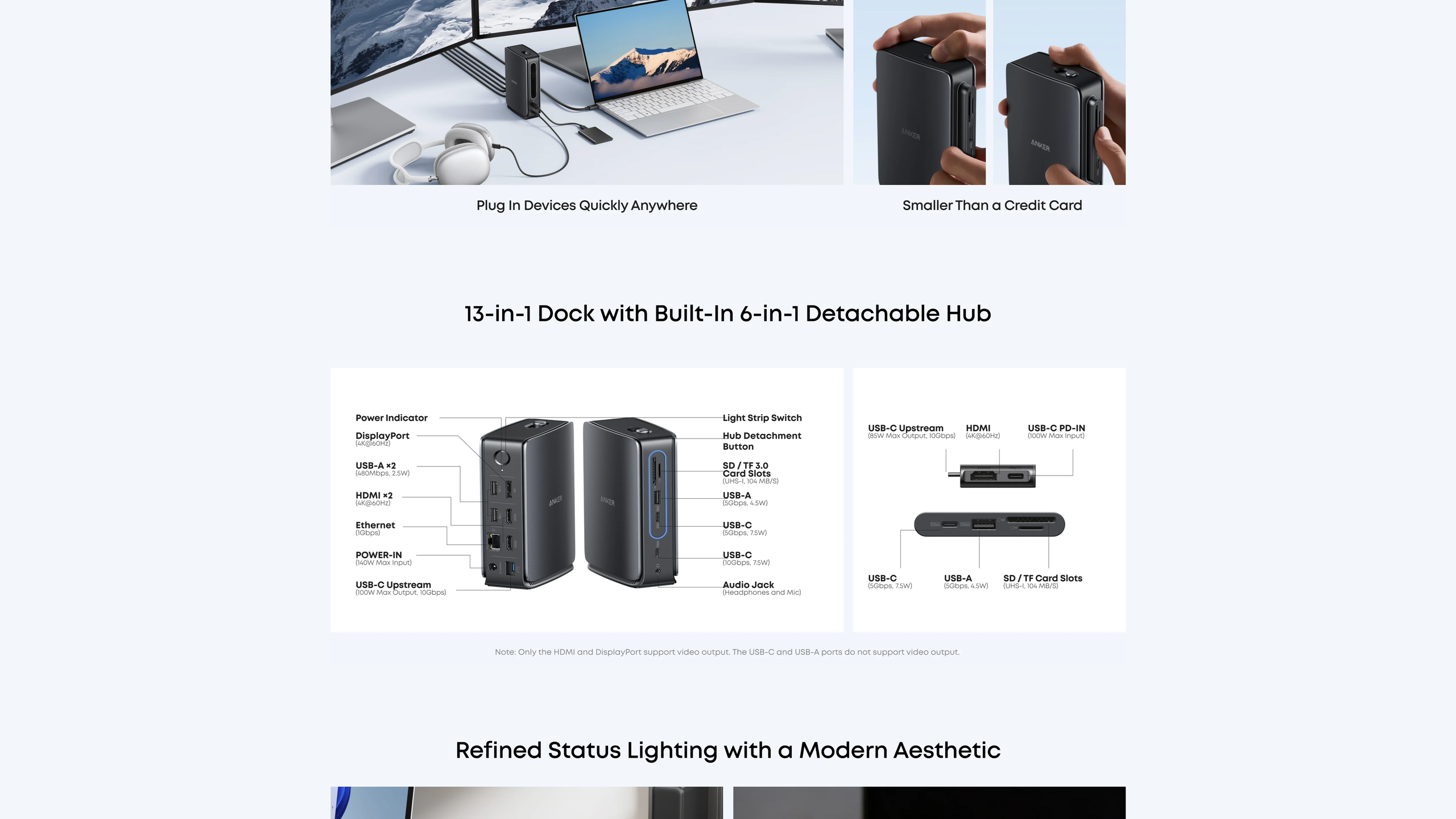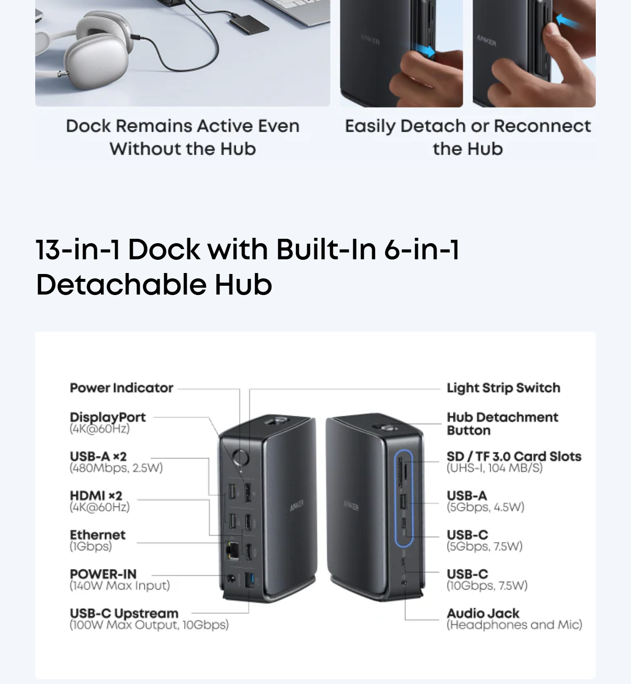 Switch effortlessly between full desktop setups and mobile work with a 13-in-1 dock for every connection plus a detachable 6-in-1 hub for quick, on-the-go access.