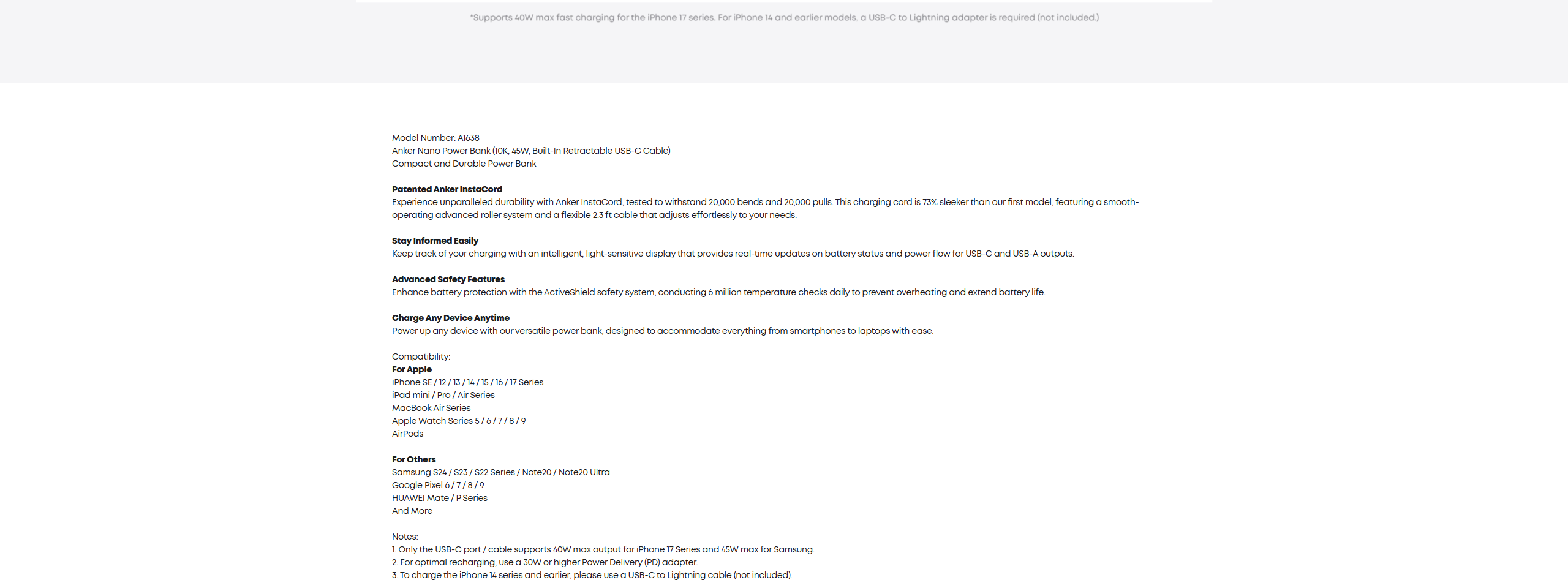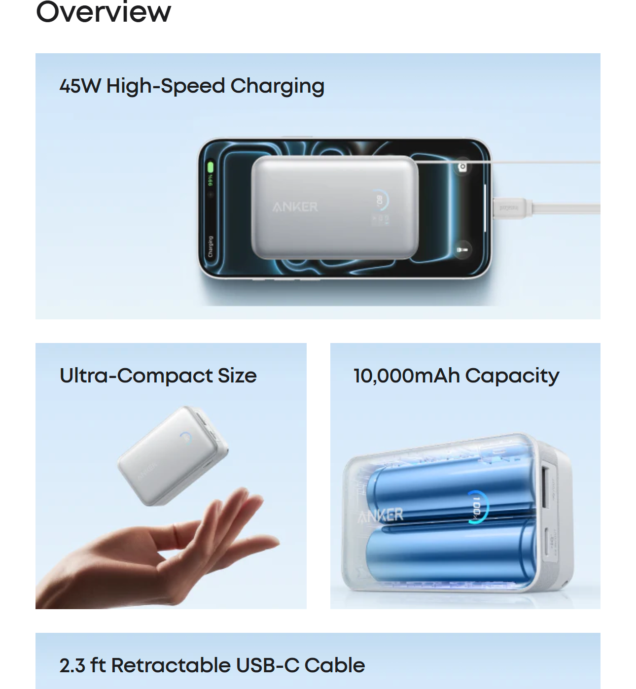 Anker Nano Power Bank (10K, 45W, Built-In Retractable USB-C Cable), welcome guide, 24-month warranty, and our friendly customer service.