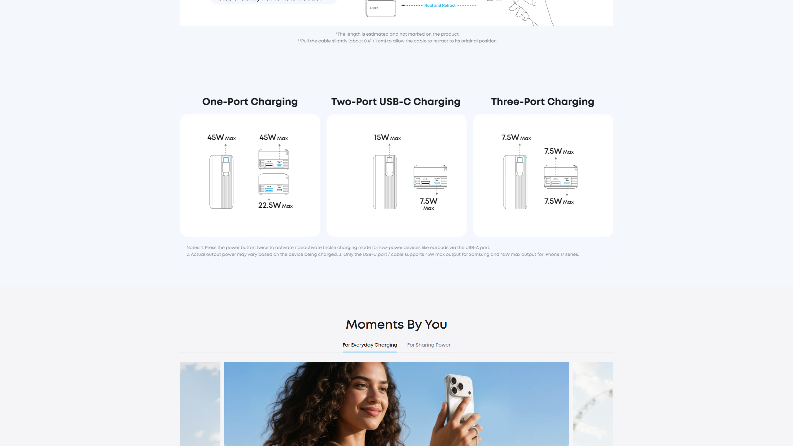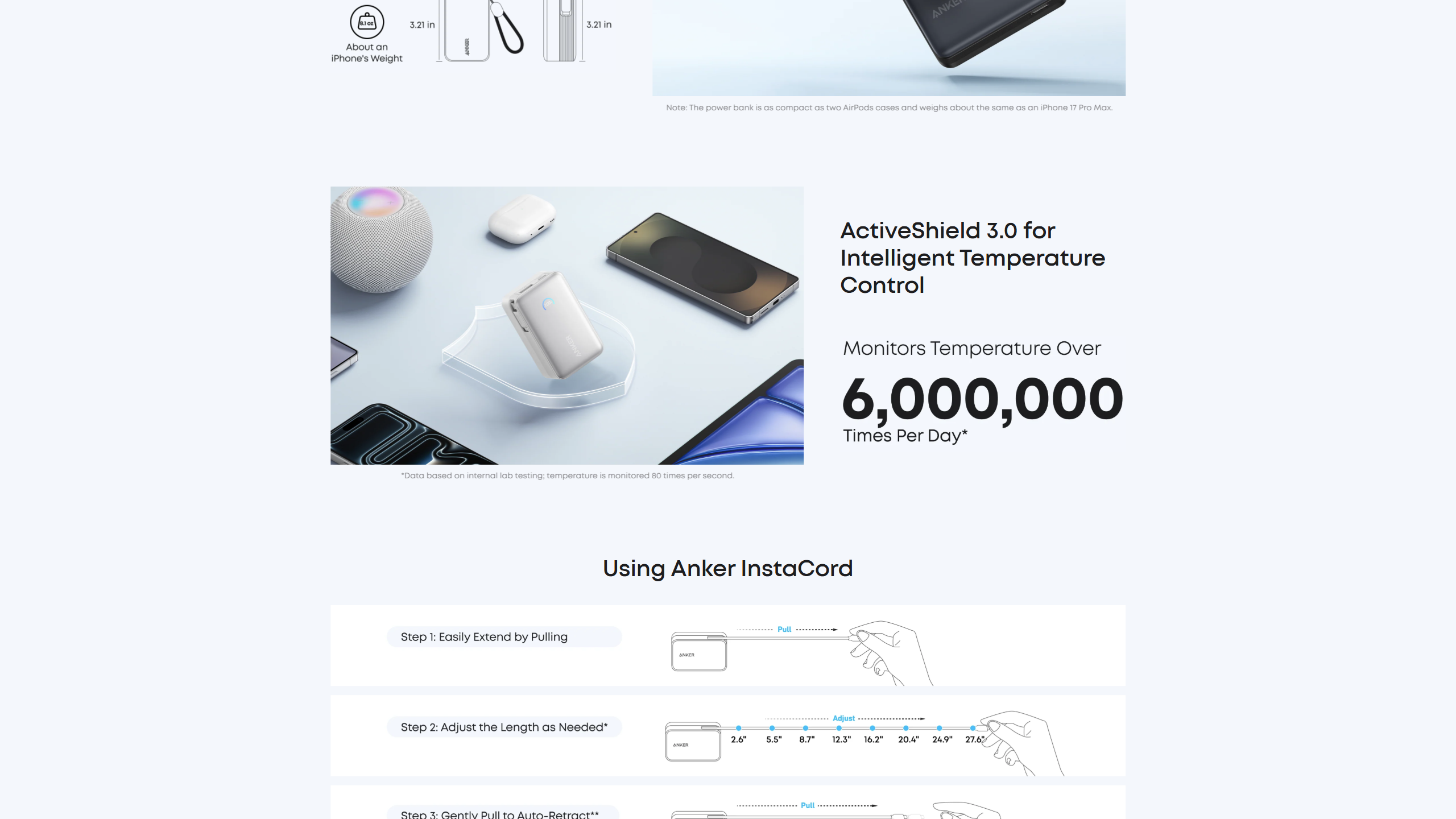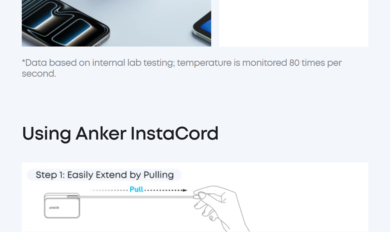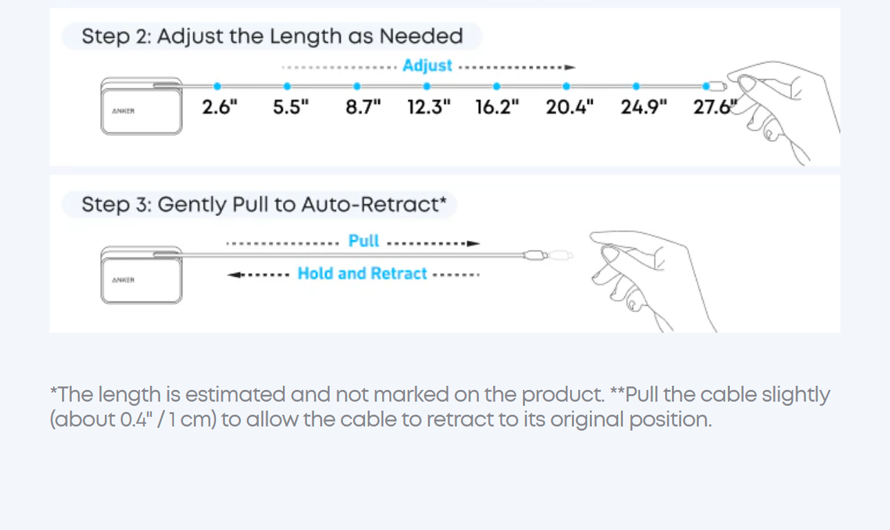 Seamlessly power up with a pull of the durable, built-in retractable cable, capable of over 20,000 bends. Charge neatly and efficiently without the hassle of tangled wires.