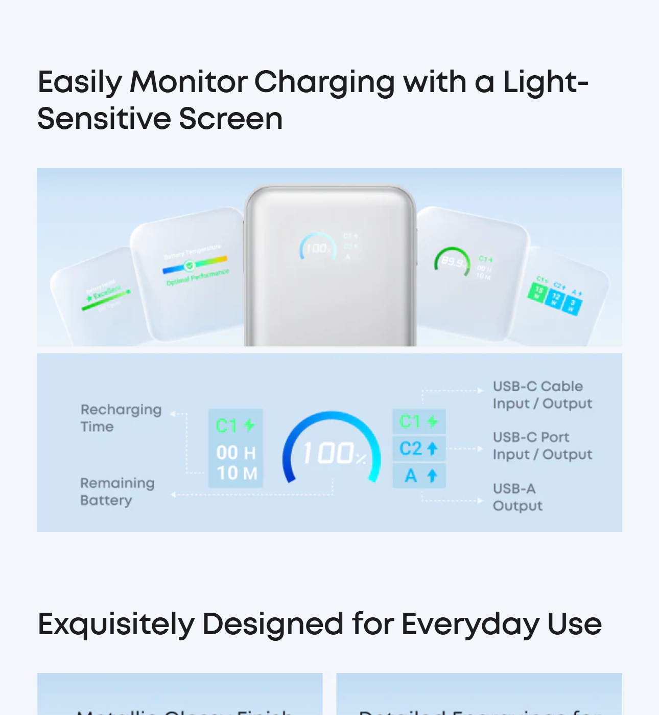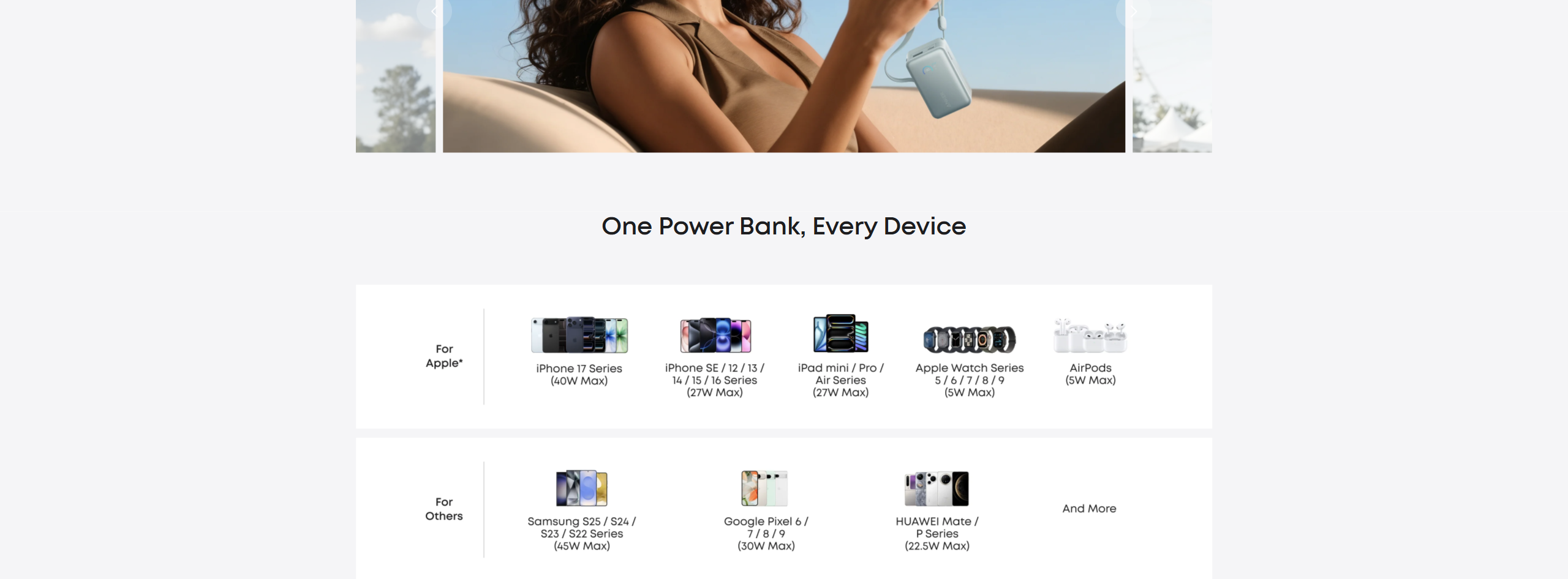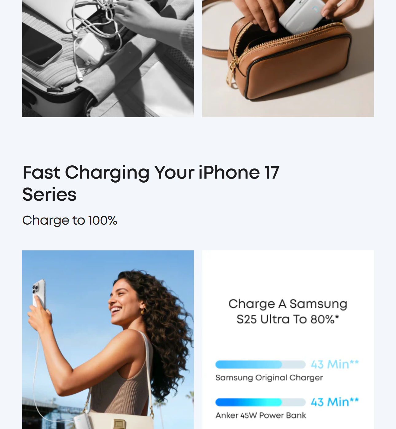 Enjoy simultaneous charging and recharging with a 45W max single-port USB-C output for devices and a 30W max input for quick power bank replenishment. Charge an iPhone 17 Pro to 50% in 20 minutes and recharge the power bank to 100% in 2 hours.