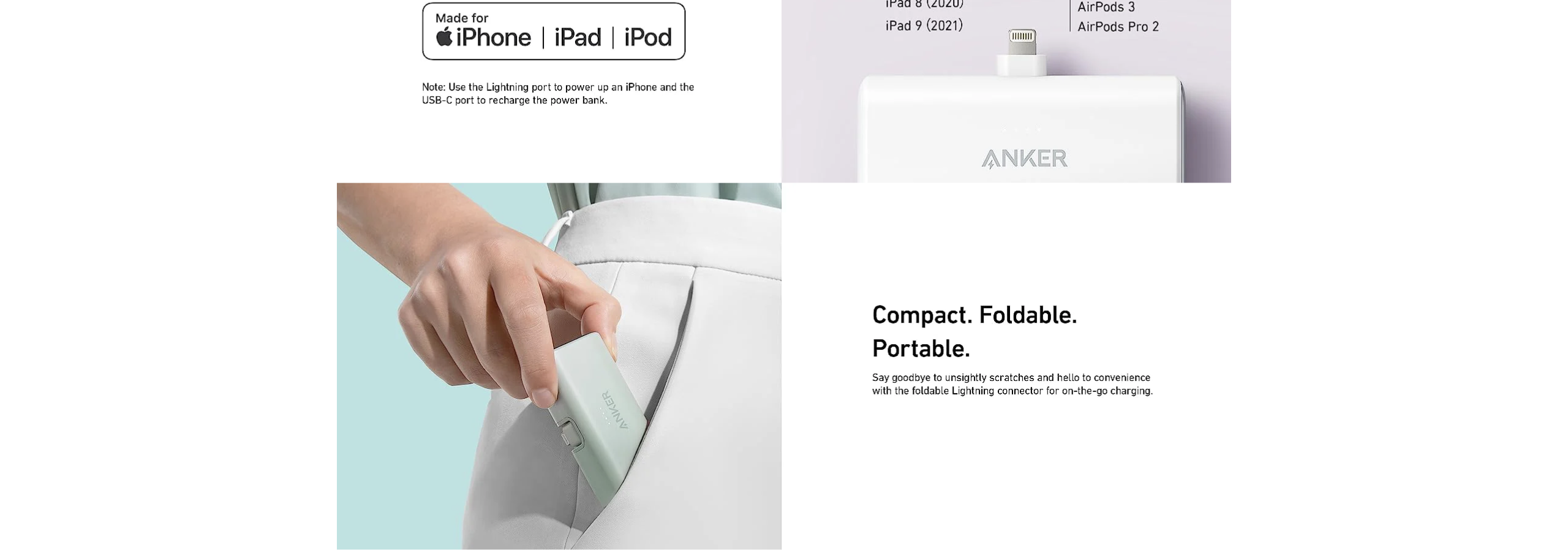 The power bank is made specifically for Apple devices like iPhones, iPads, and iPods—trust it to work safely and effectively with your devices.