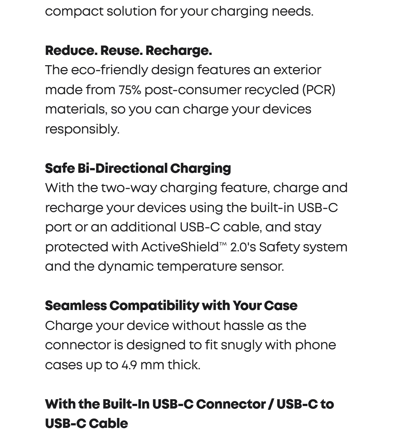 Say goodbye to cable tangles and protect your USB-C connector with a convenient foldable design for hassle-free charging.