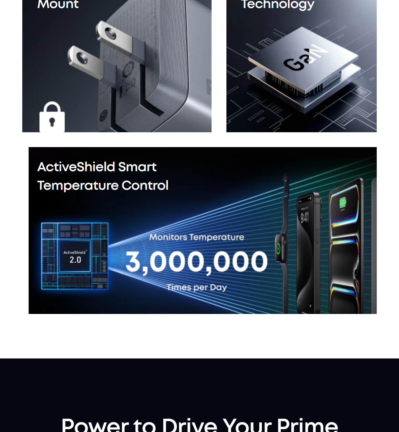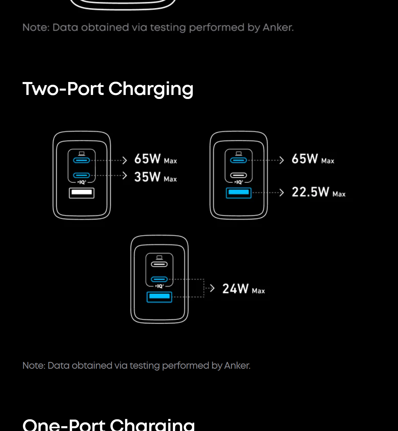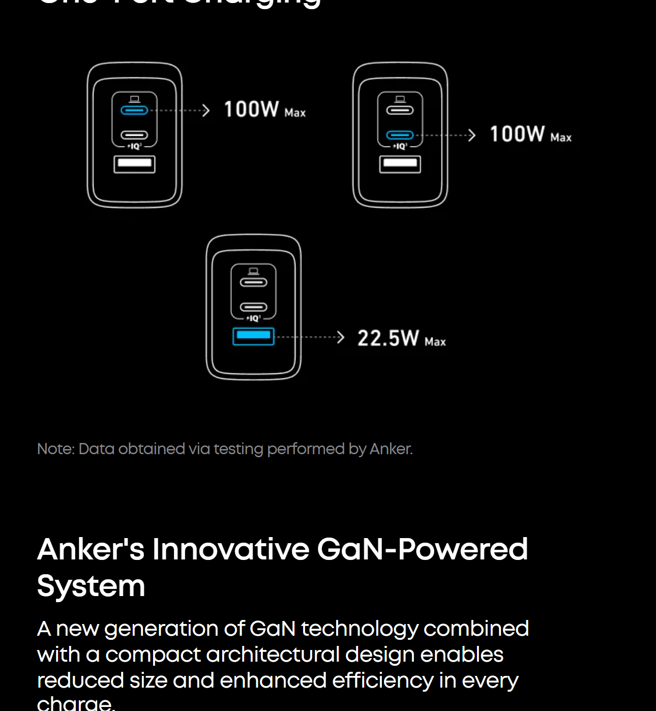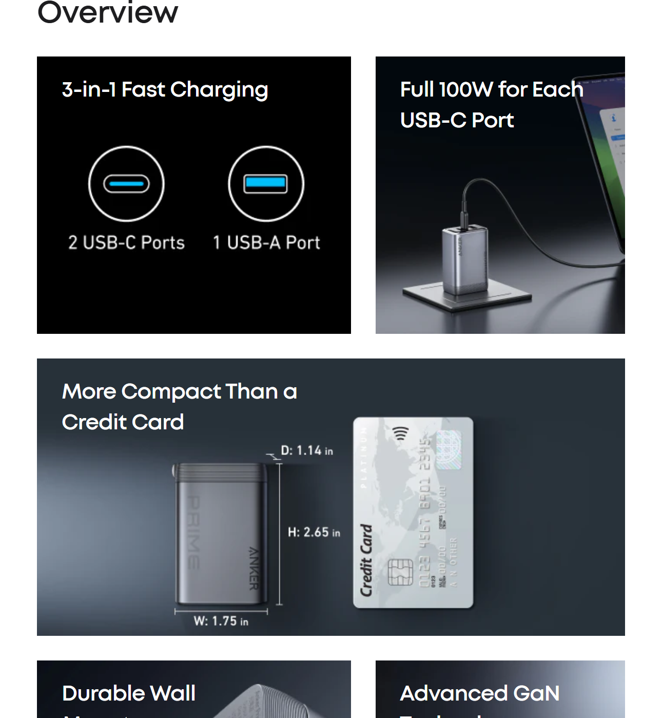 Power up three devices simultaneously with a total of 100W output through two USB-C and one USB-A port for efficient power distribution.