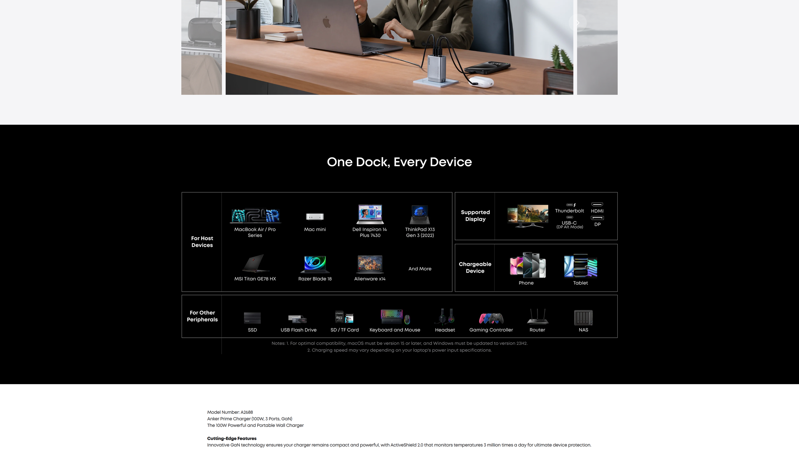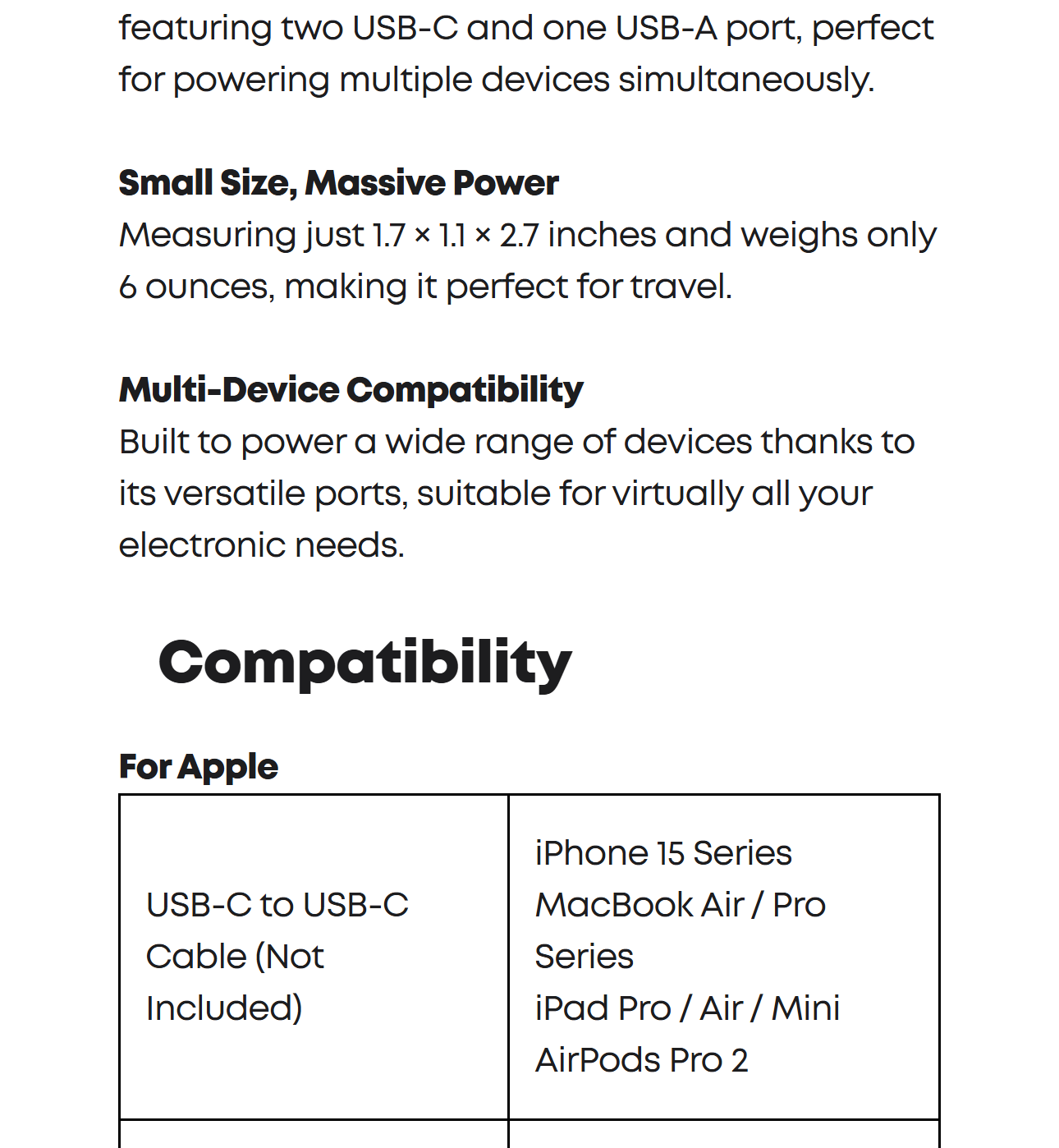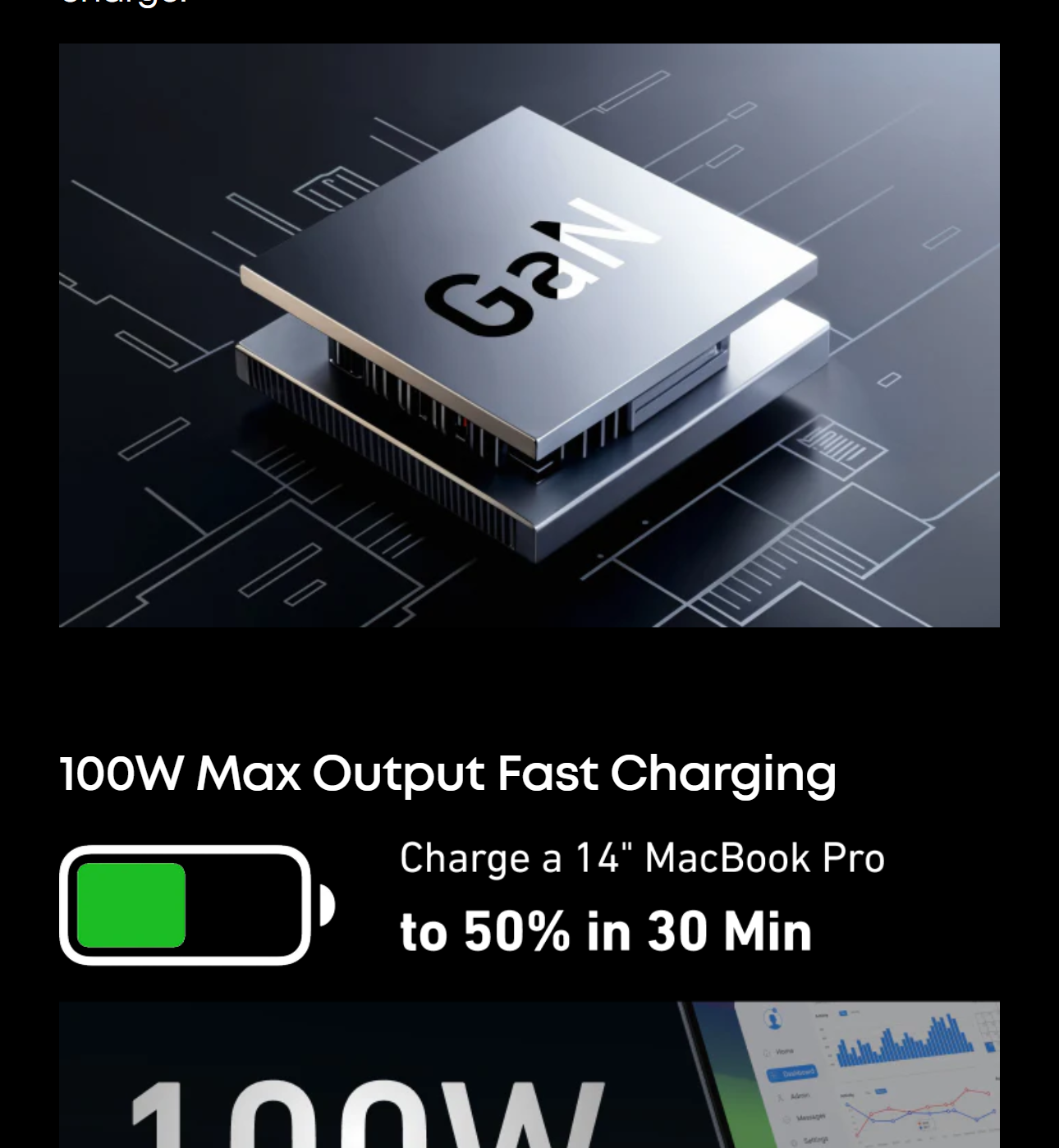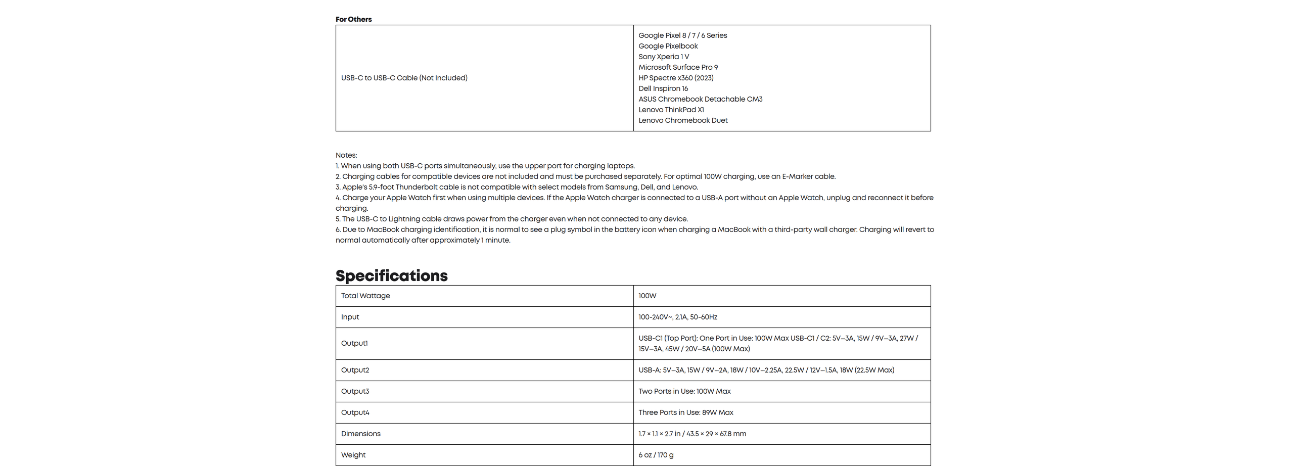 Each USB-C port delivers a full 100W, efficiently charging your 14-inch MacBook Pro (M3 Pro) from 0 to 50% in just 30 minutes.