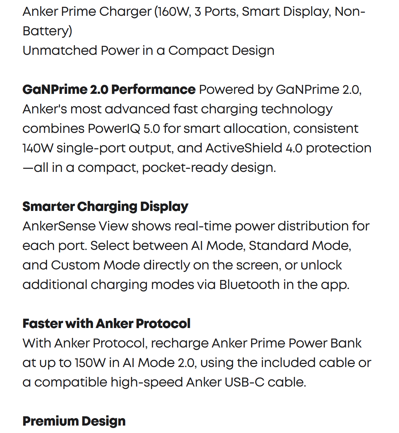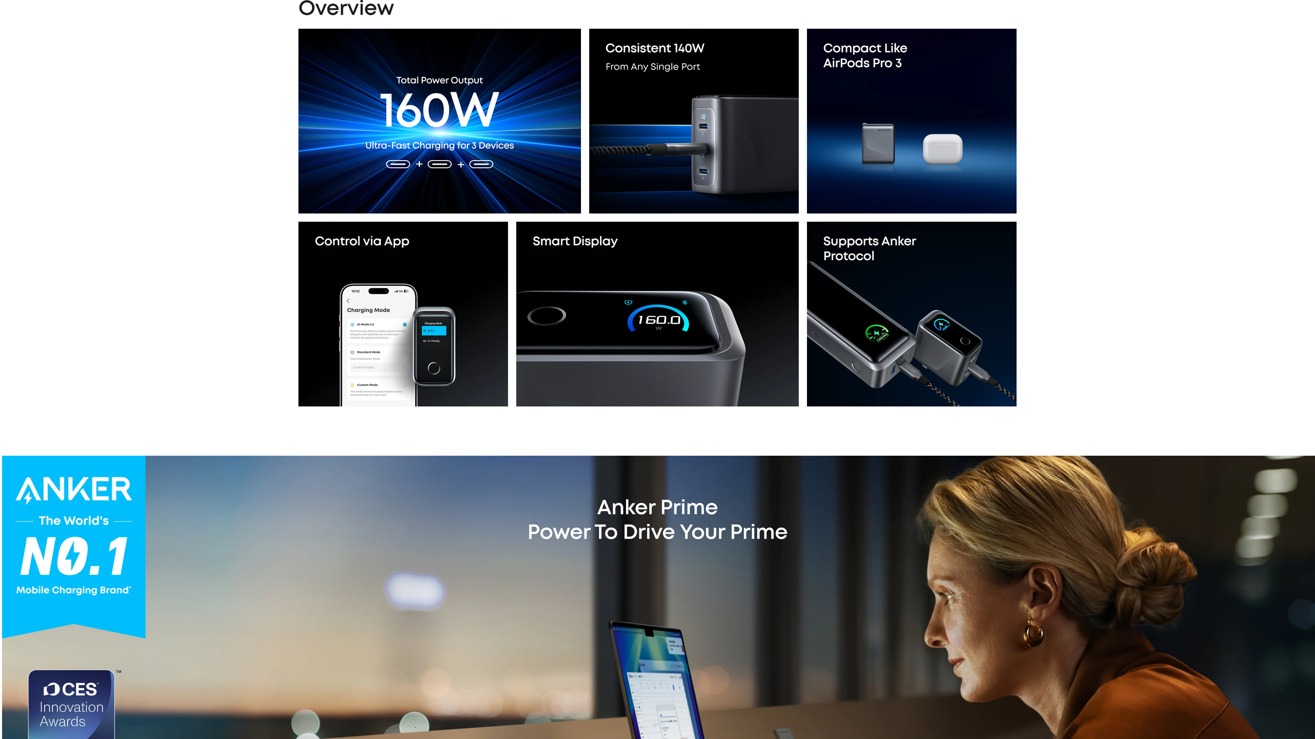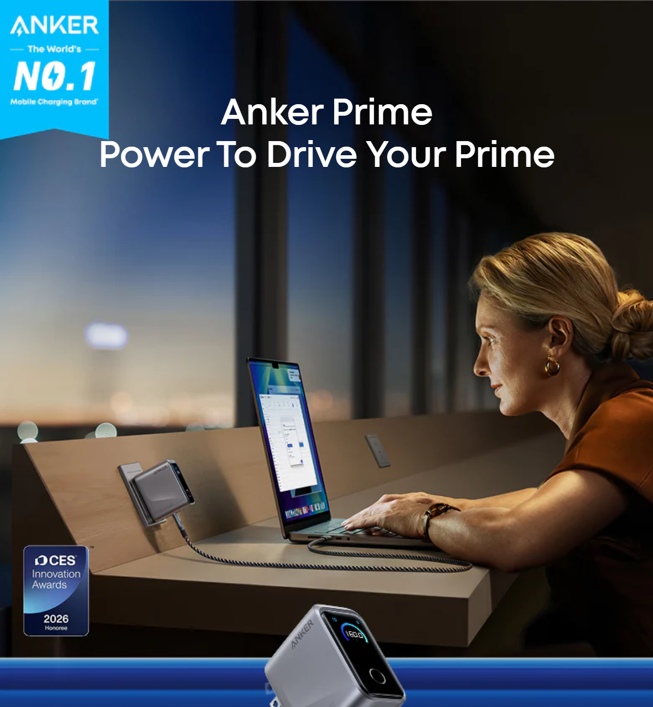 Anker Prime Charger (160W, 3 Ports, Smart Display, Non-Battery), welcome guide, 24-month warranty, and our friendly customer service.
