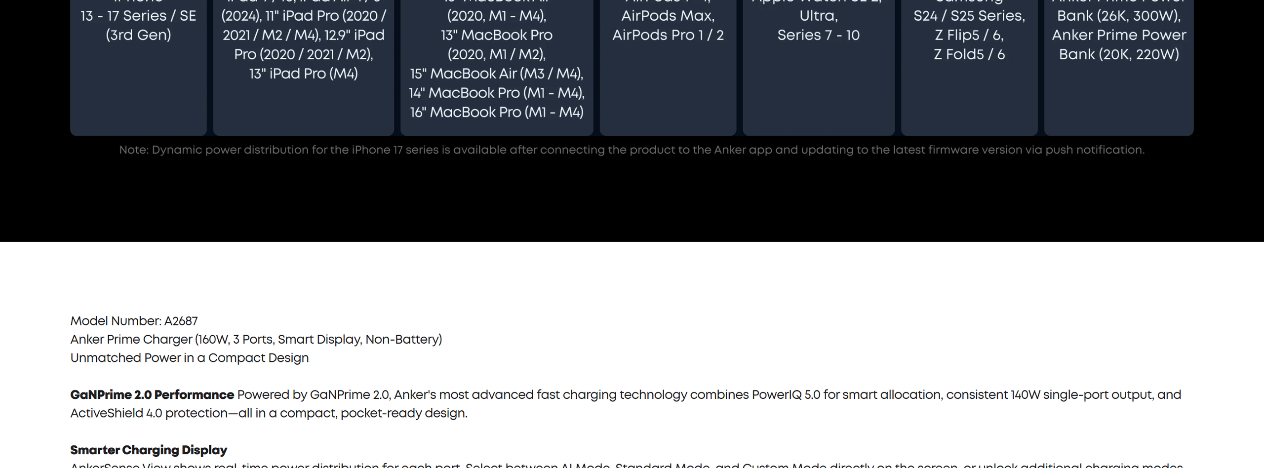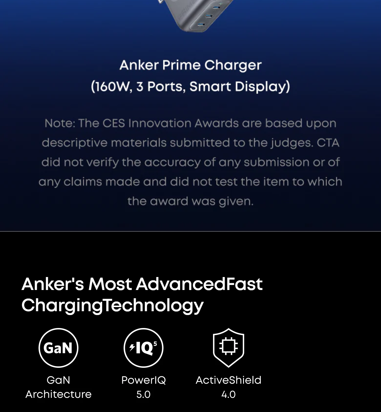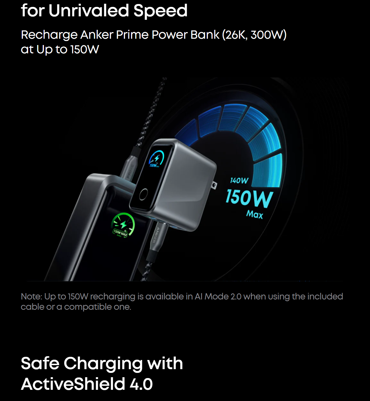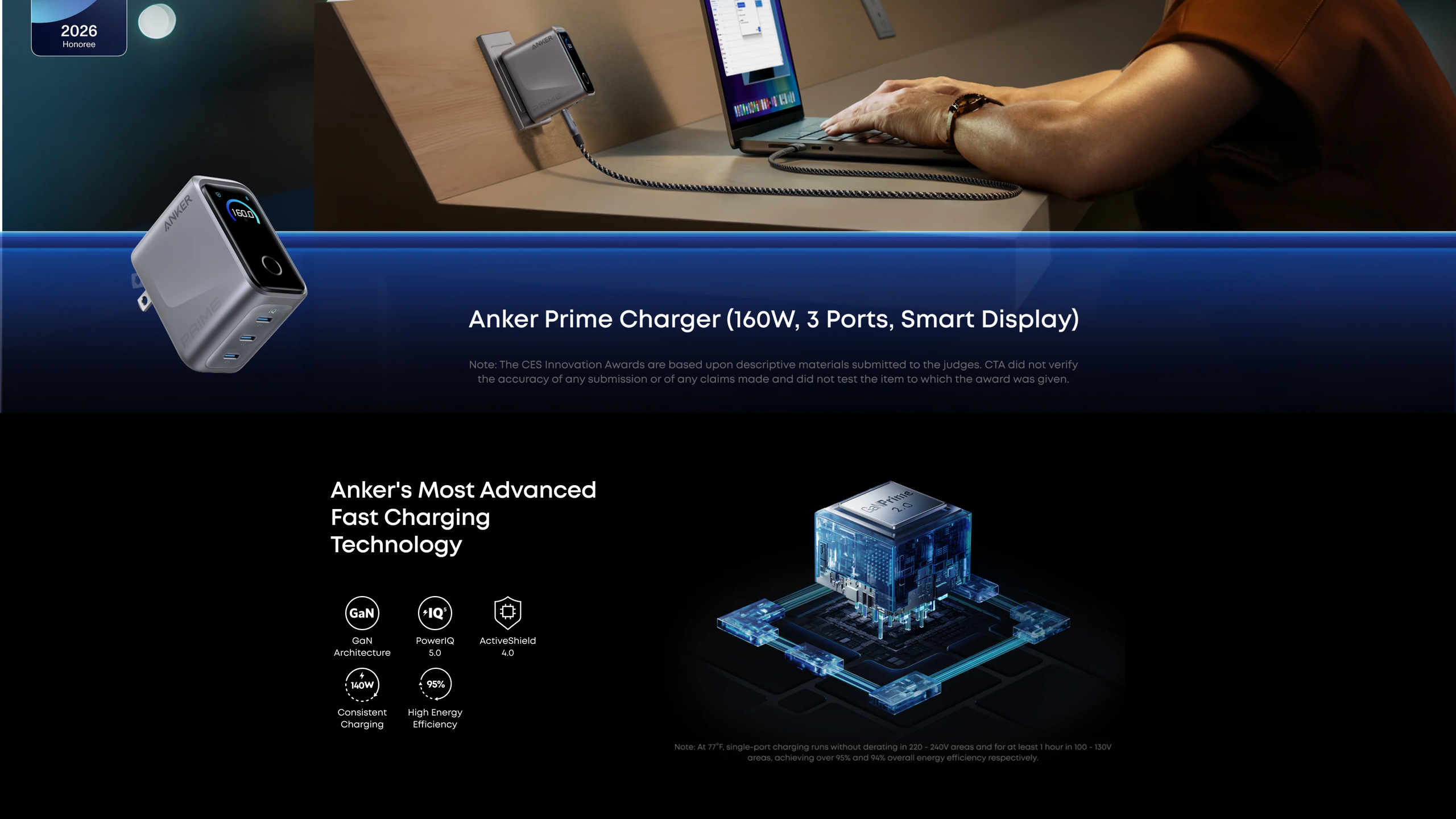 Anker Prime Charger (160W, 3 Ports, Smart Display)