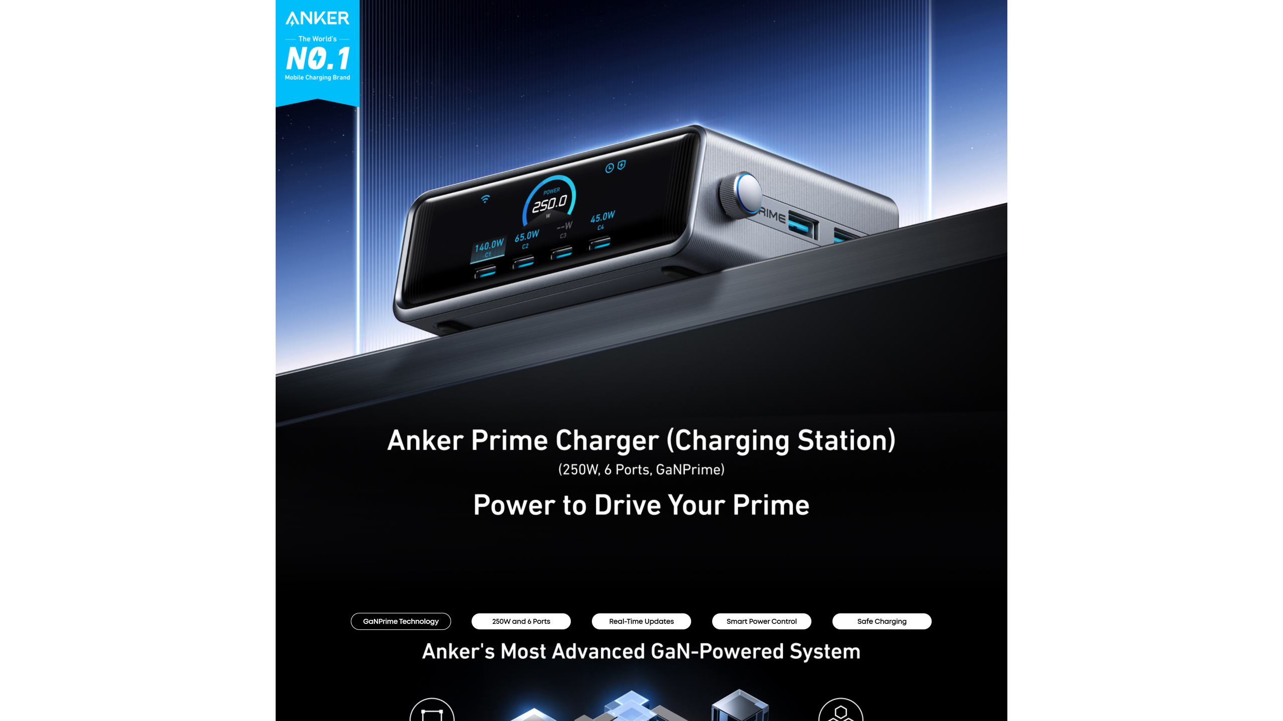 Anker Prime Charger (250W, 6 Ports, GaNPrime)