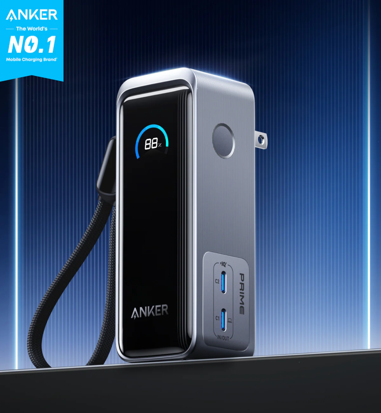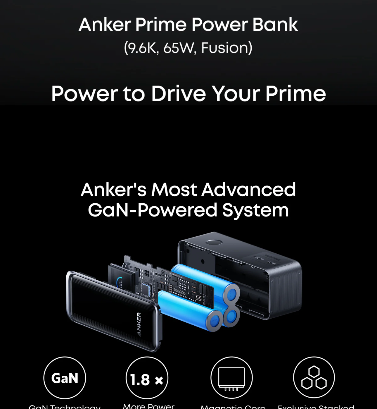 Anker Prime Power Bank (9.6K, 65W, Fusion), Lanyard Charging Cable, Anker USB-C to USB-C Cable (3.3 ft, 100W, Briaded), travel pouch, welcome guide, 24-month warranty, and our friendly customer service.