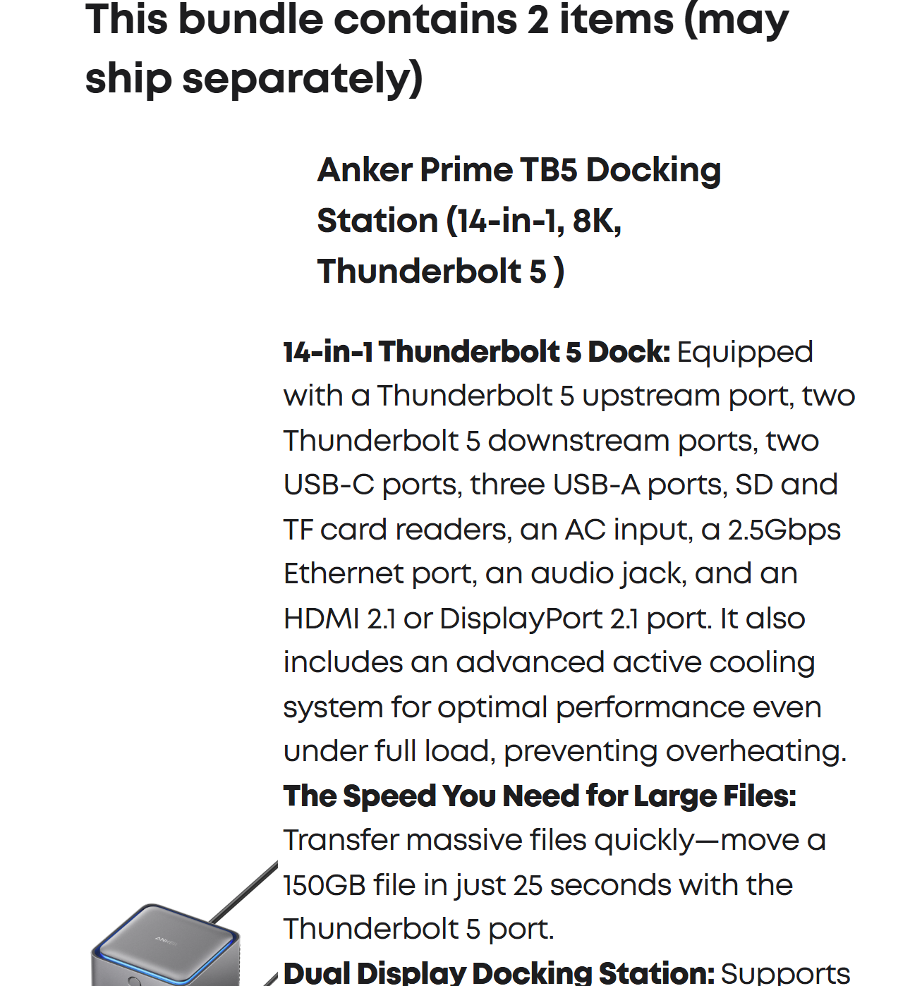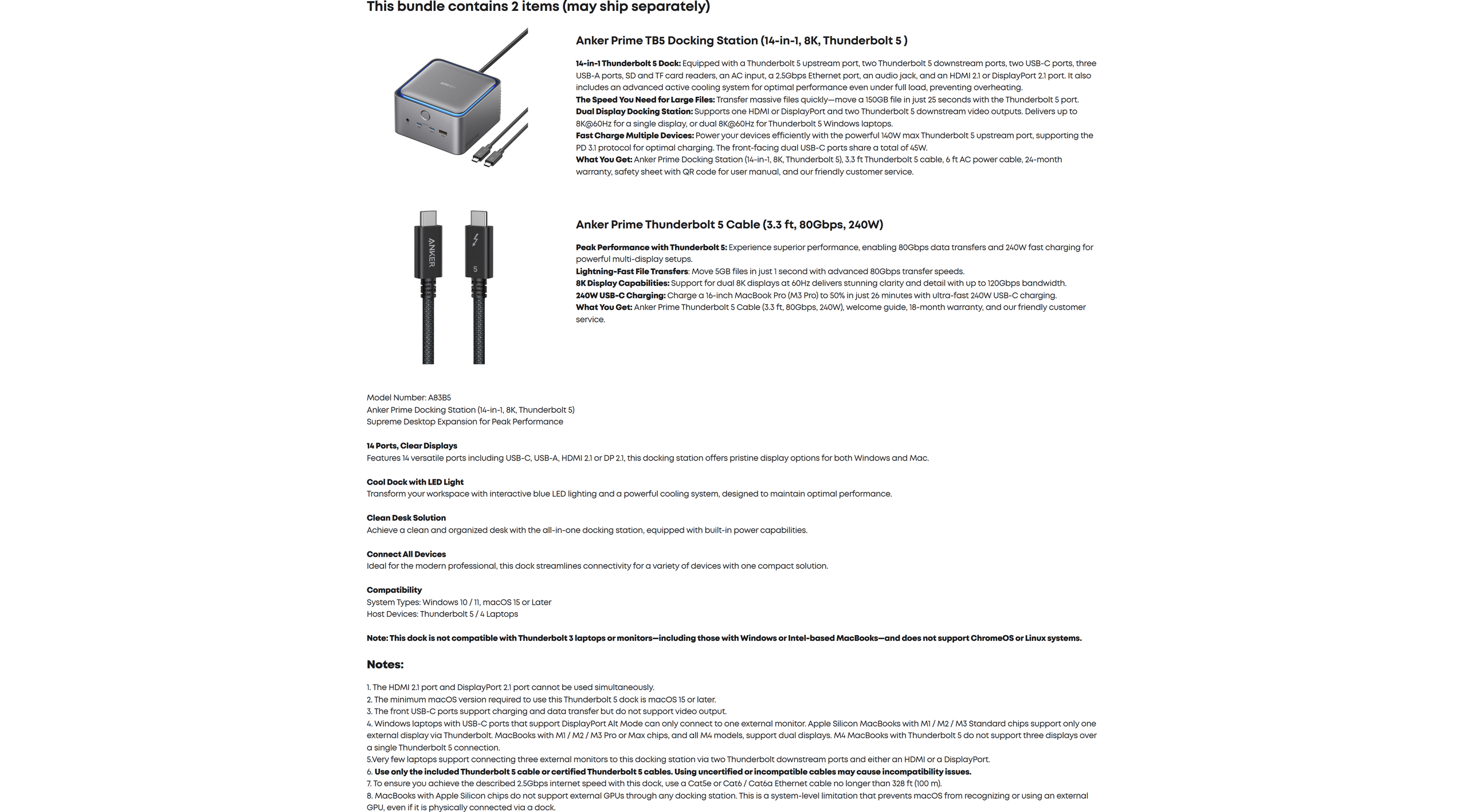 Anker Prime TB5 Docking Station (14-in-1, 8K, Thunderbolt 5 ) and Thunderbolt 5 Cable (3.3 ft, 80Gbps, 240W)