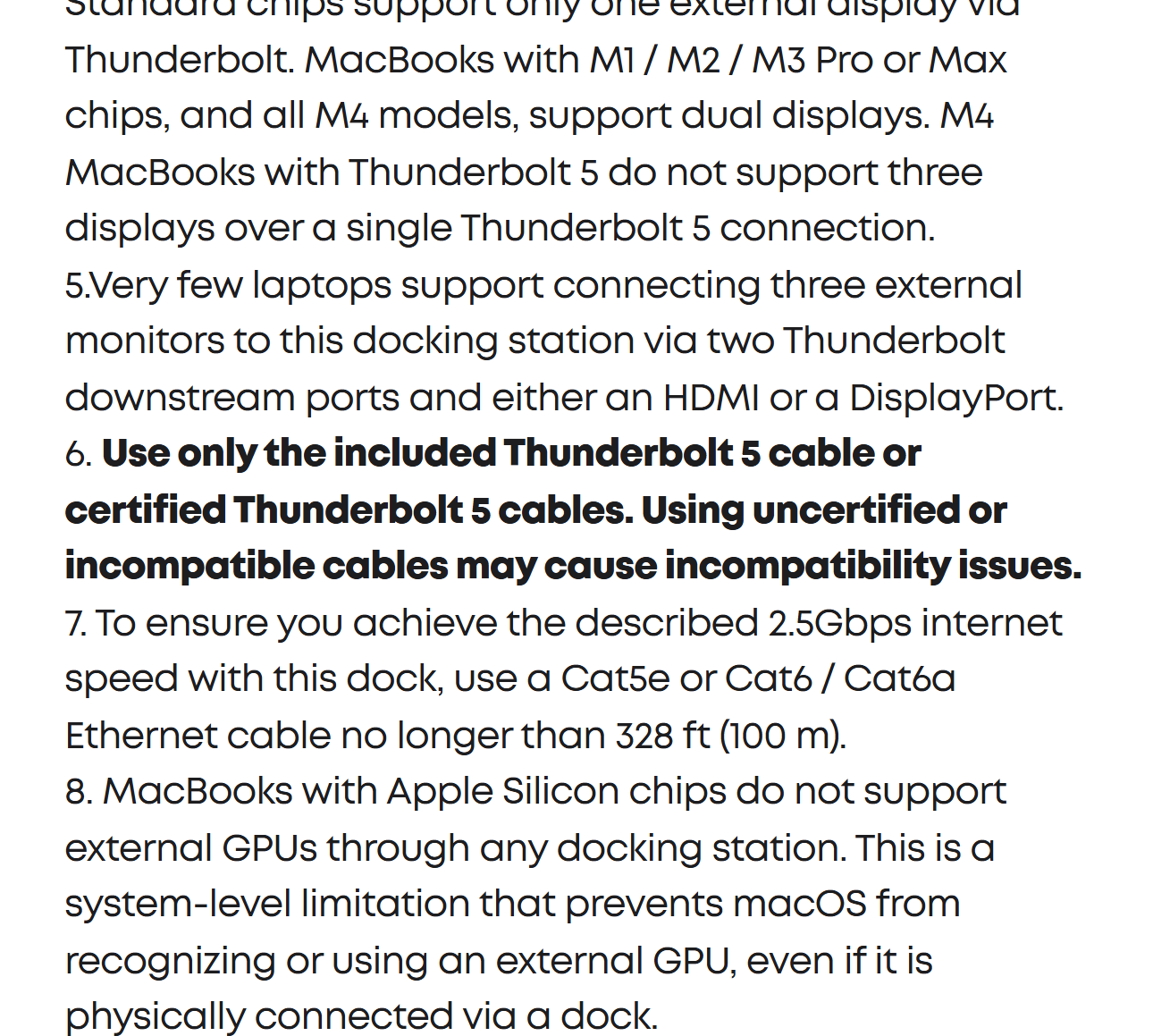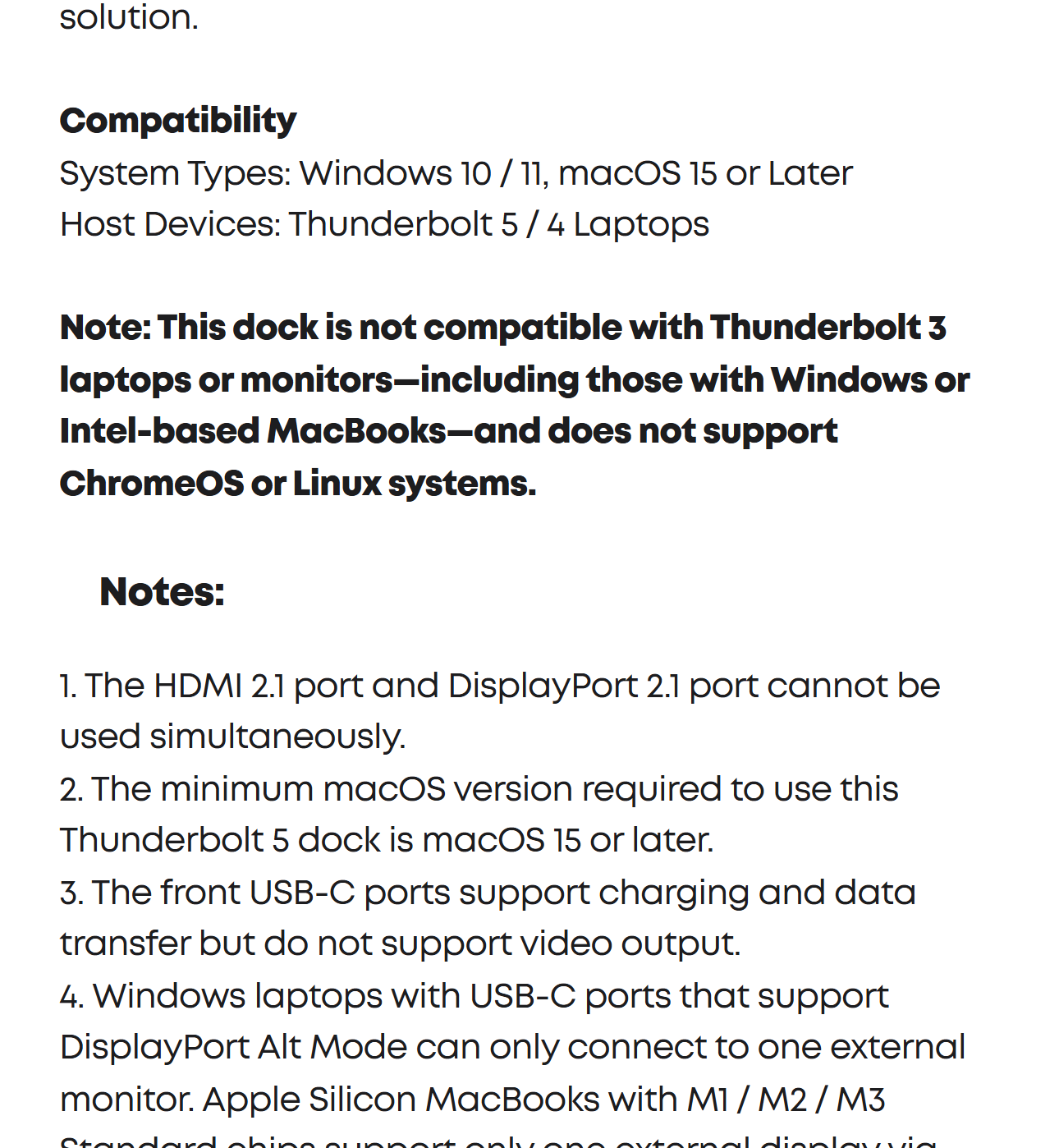 Supports one HDMI or DisplayPort and two Thunderbolt 5 downstream video outputs. Delivers up to 8K@60Hz for a single display, or dual 8K@60Hz for Thunderbolt 5 Windows laptops.