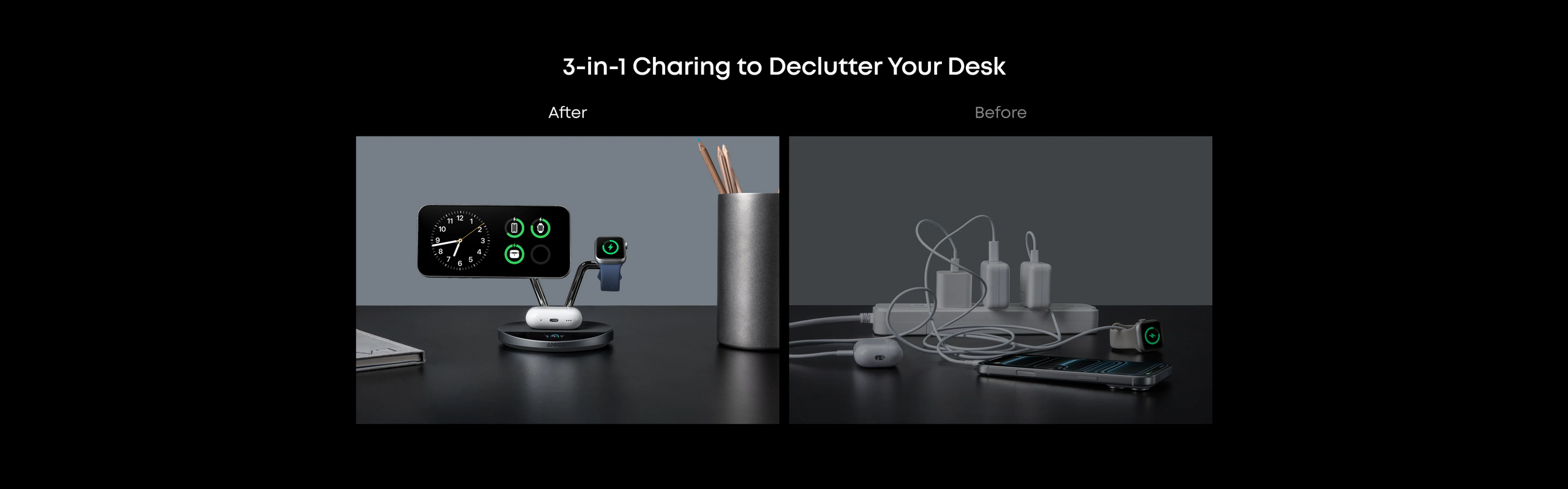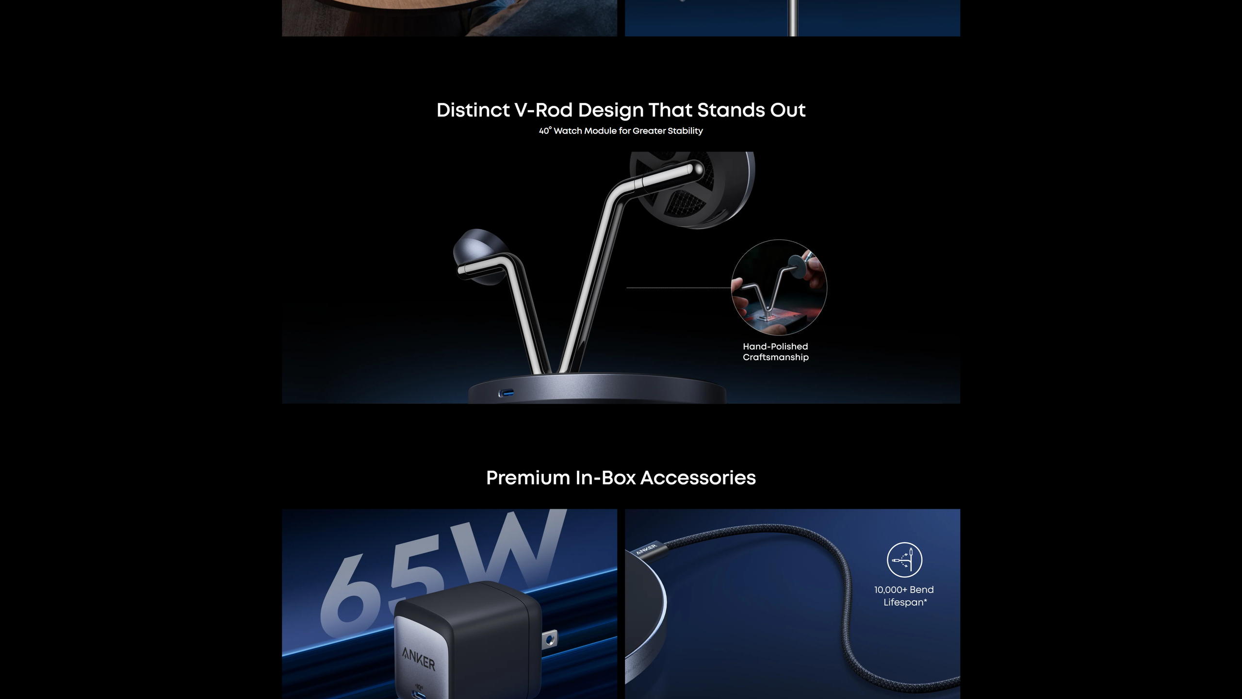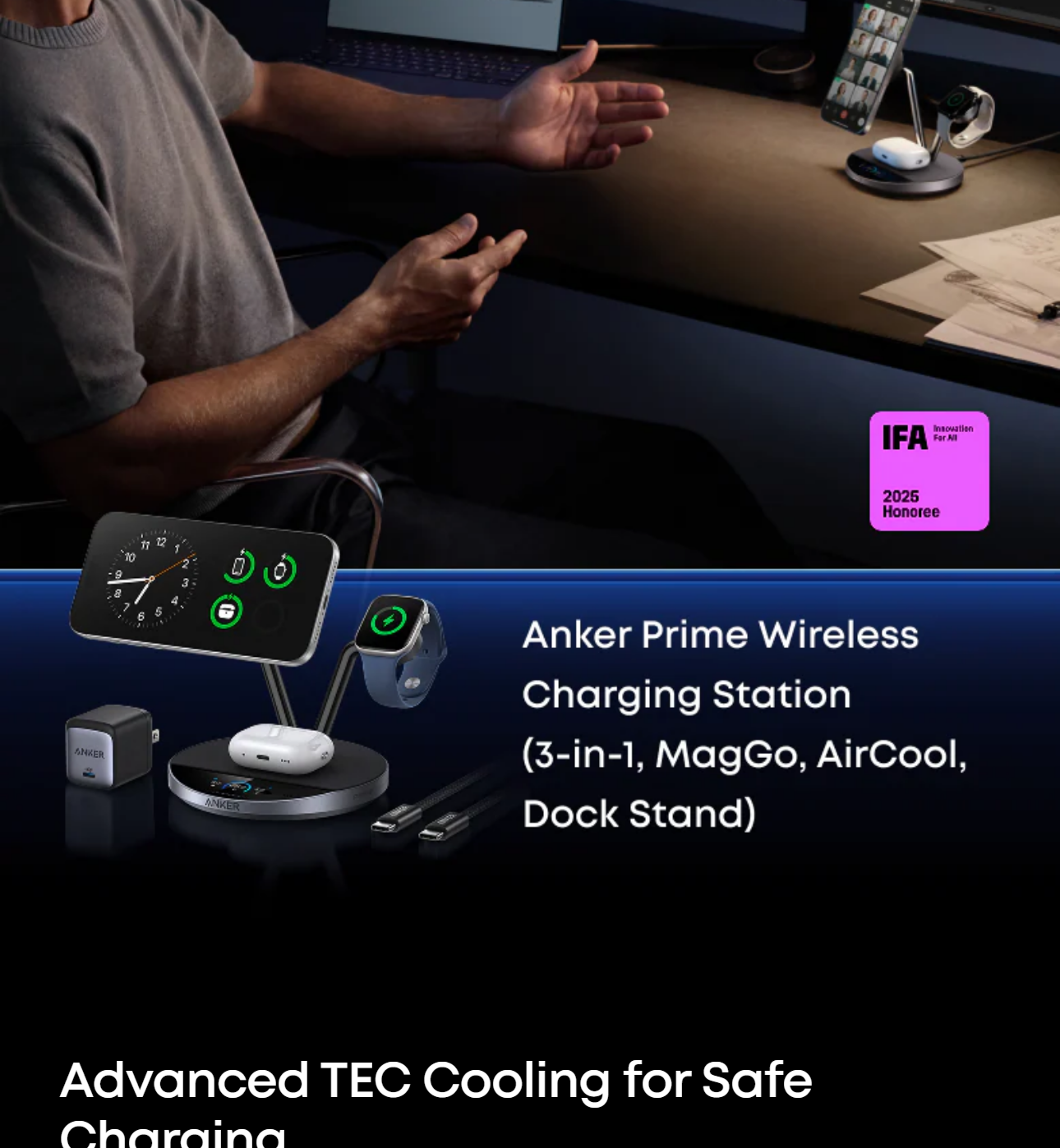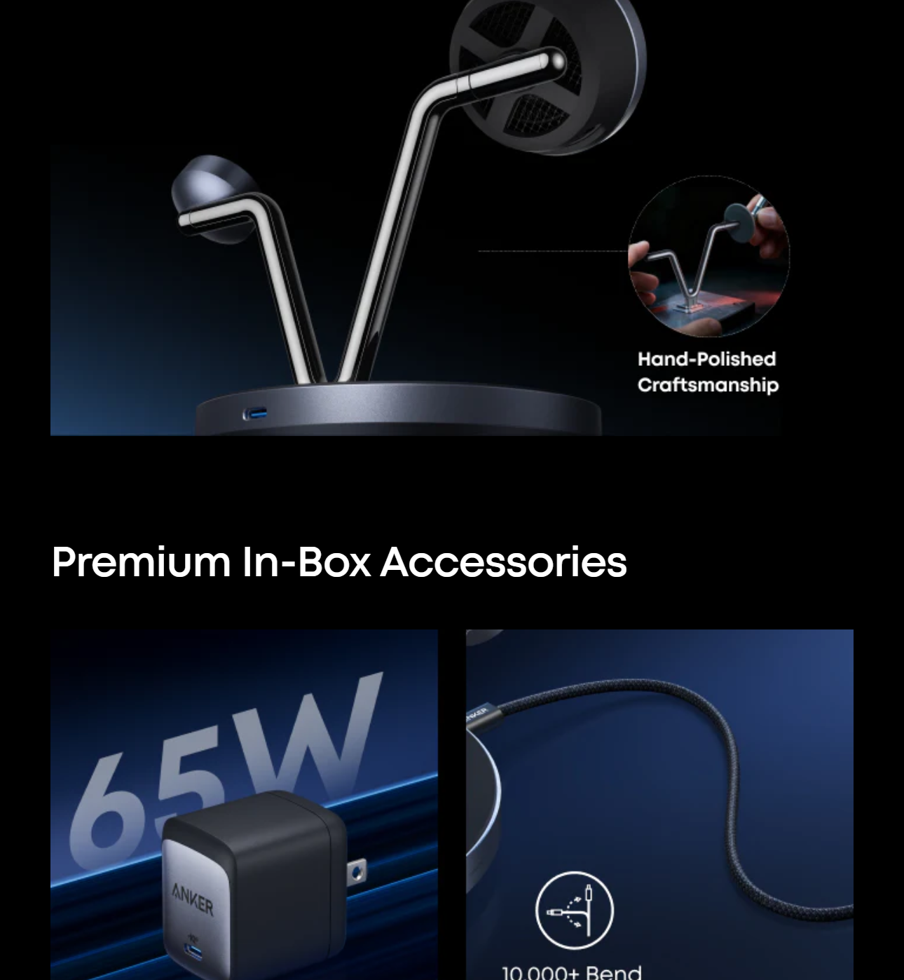 Anker Prime Wireless Charging Station (3-in-1, MagGo, AirCool, Dock Stand), 65W GaN foldable adapter, 5 ft USB-C to USB-C cable (10,000-bend tested), welcome guide, 24-month warranty, and our friendly customer service.