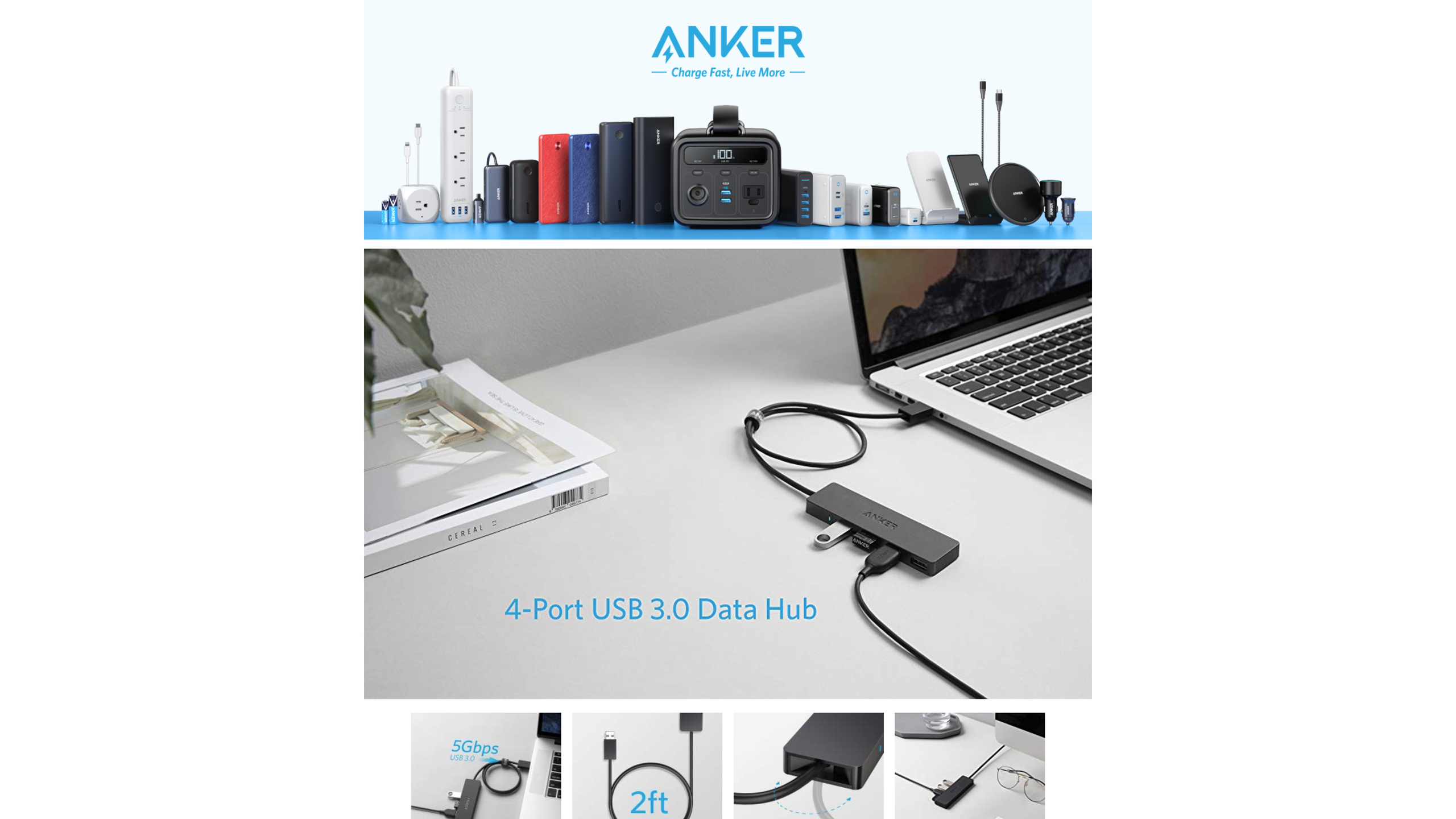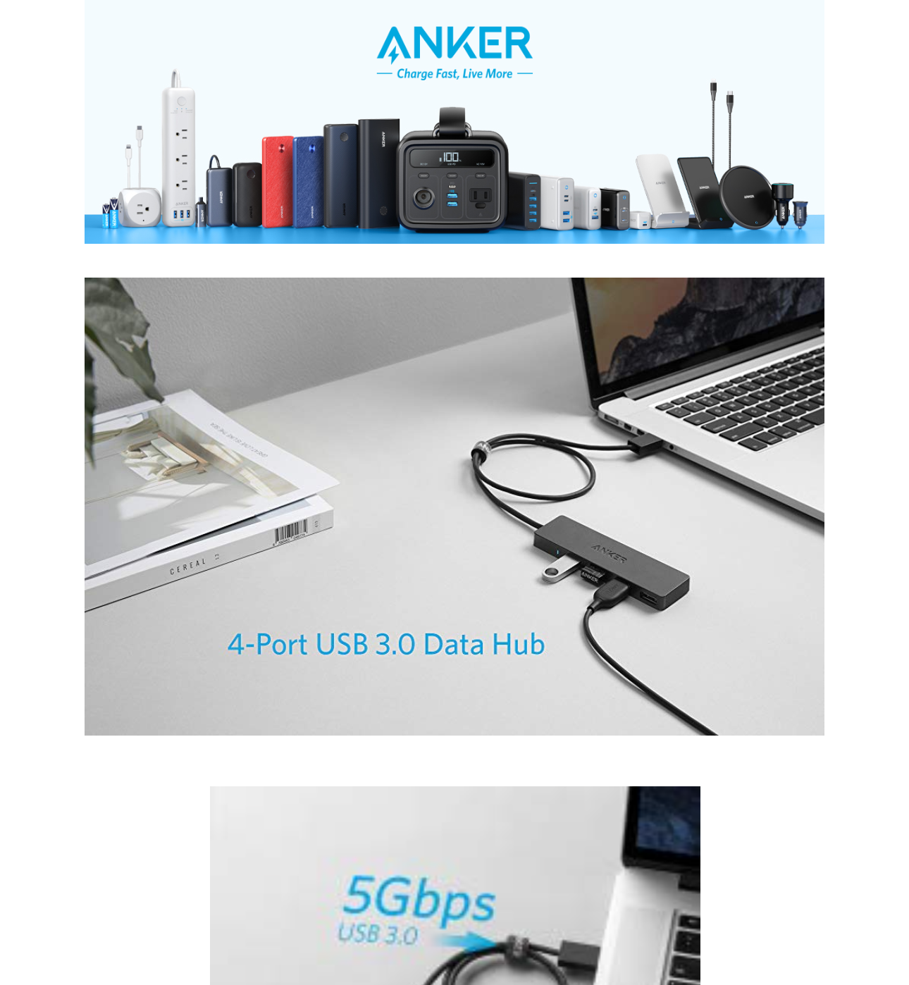 Anker Ultra Slim 4-Port USB 3.0 Data Hub, welcome guide, our worry-free 18-month warranty and friendly customer service.