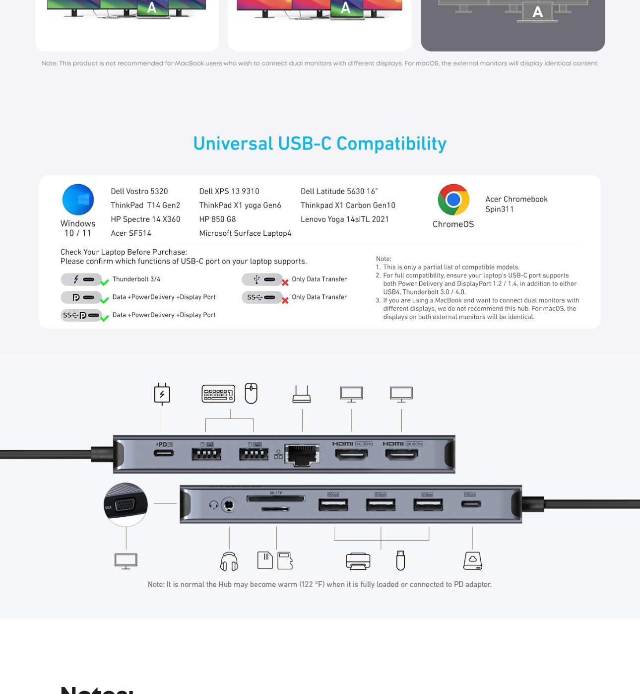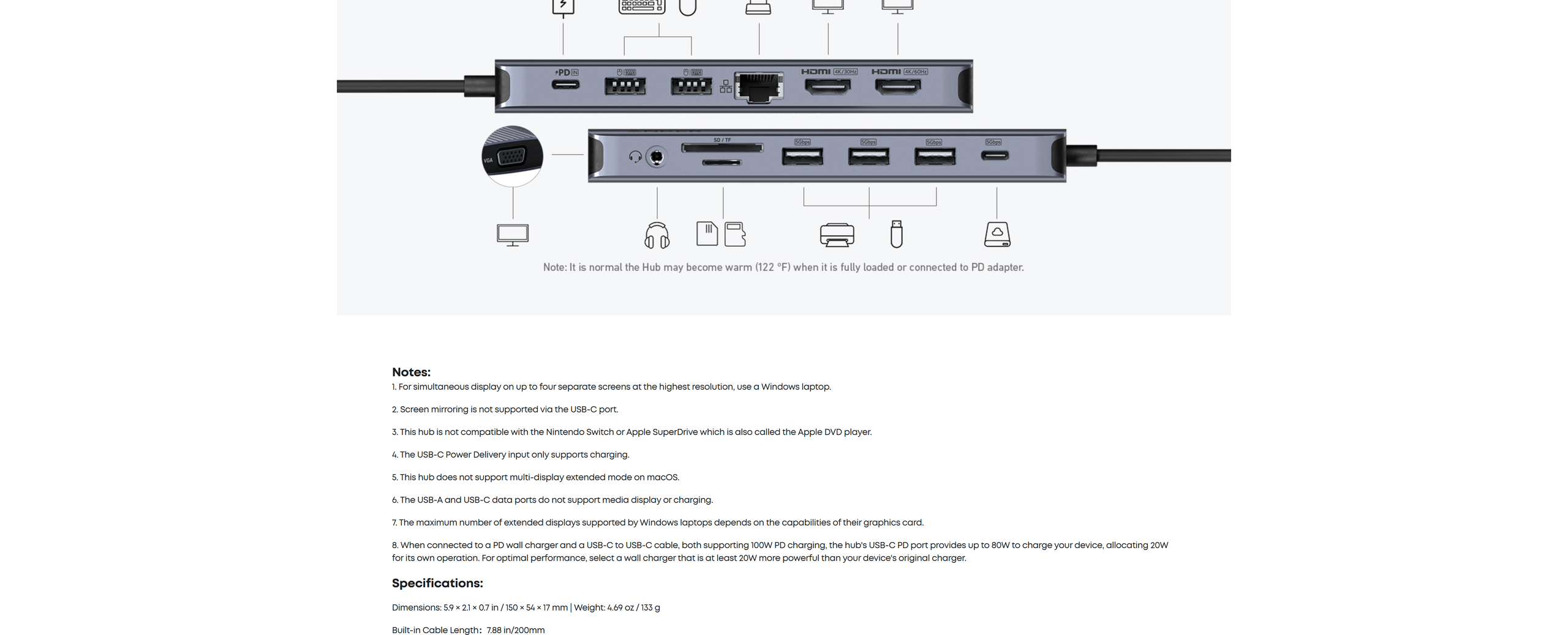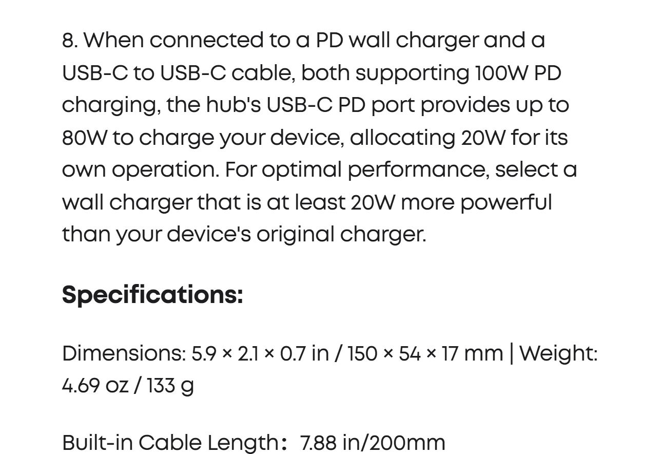 The hub's 80W seamless charging solution ensures your devices receive constant power, letting you work and play without interruptions. (Note: Wall charger not included)