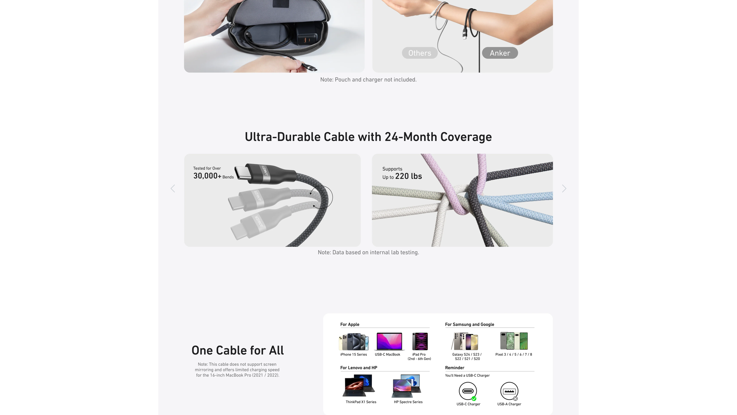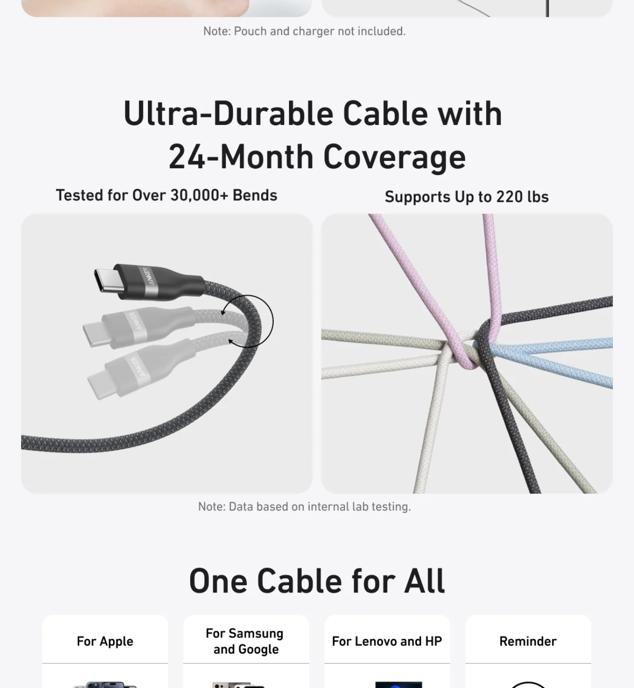 With a 30,000+ bend lifespan and the ability to withstand 220 lbs without breaking, this cable is built to last over 10 years.