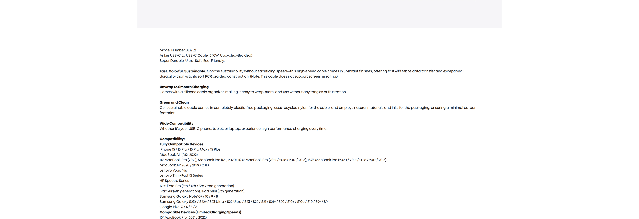 • Super-Fast 240W Cable