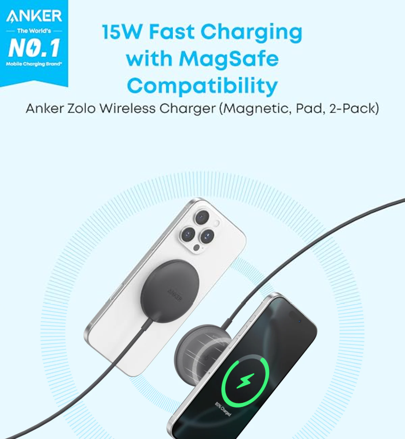 Anker Zolo Wireless Charger (Magnetic, Pad) ×2, welcome guide, 24-month warranty, and our friendly customer service.