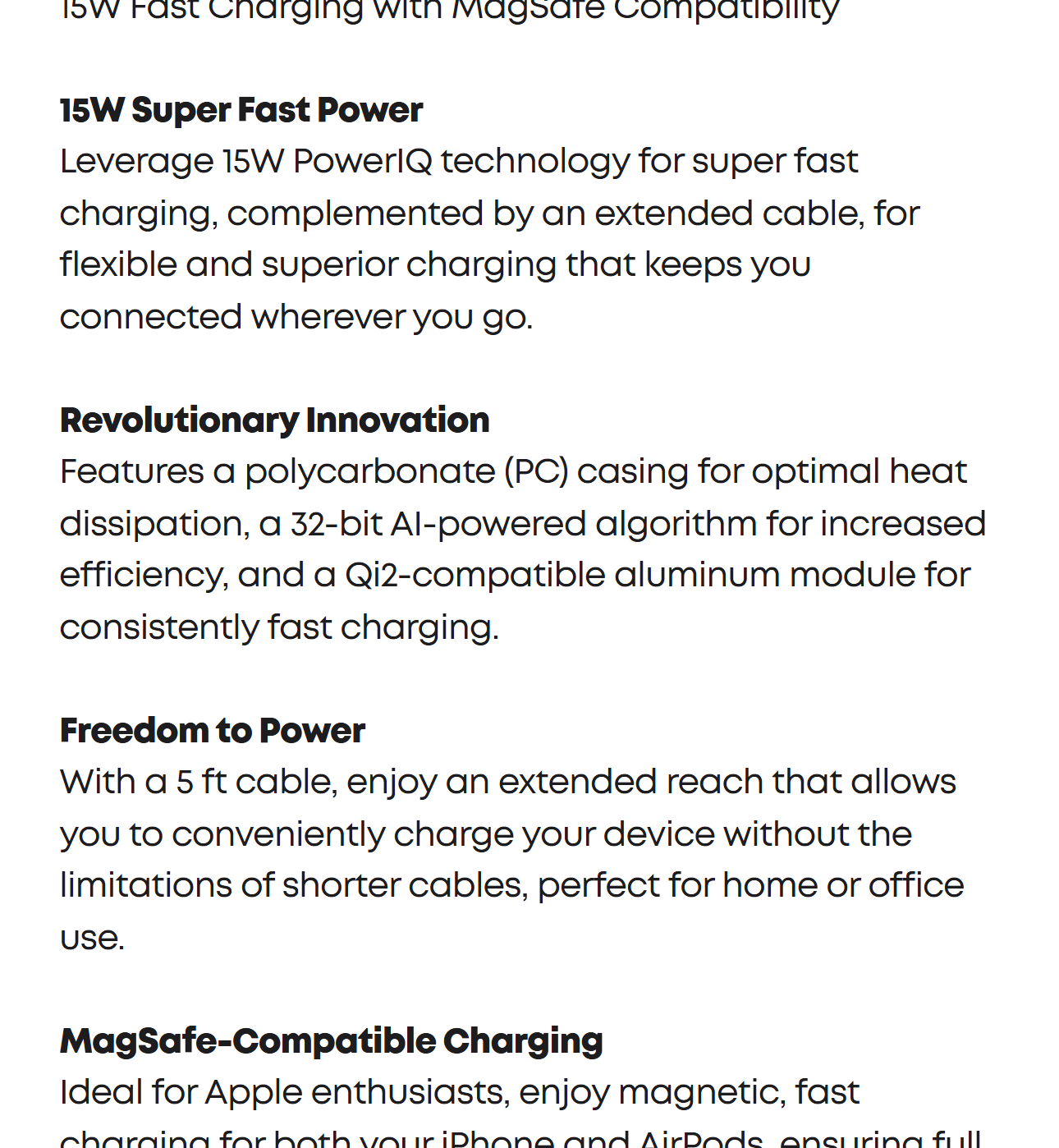 Unlock high-speed charging with 15W PowerIQ technology, powering up your iPhone 16 Pro to 25% in just 19 minutes. For the best fast charging experience, we recommend using a 20W or higher output charger (not included).