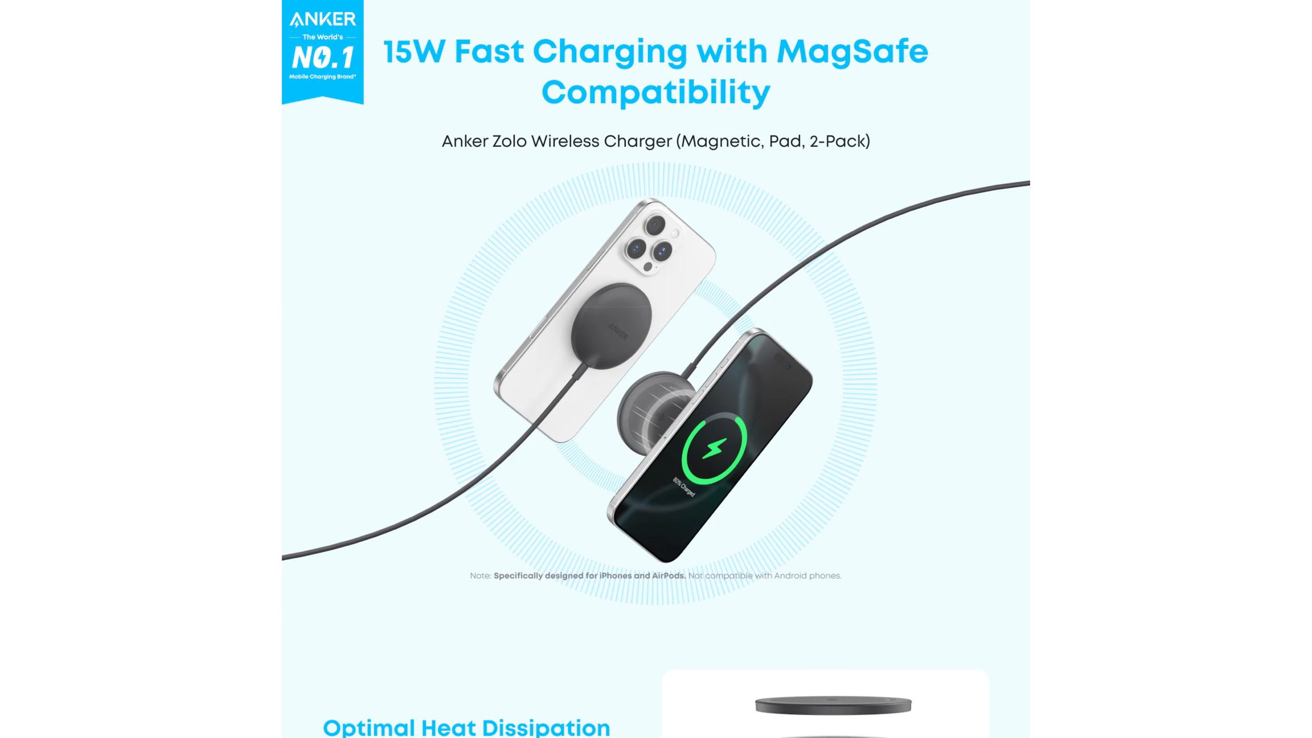 This Qi2 certified charger features our ActiveShield 2.0 safety system, offering unmatched protection by monitoring temperatures over 8 million times daily. Through intelligent temperature control detection and safety protection, it effectively improves charging efficiency and safeguards the health of your phone's battery.